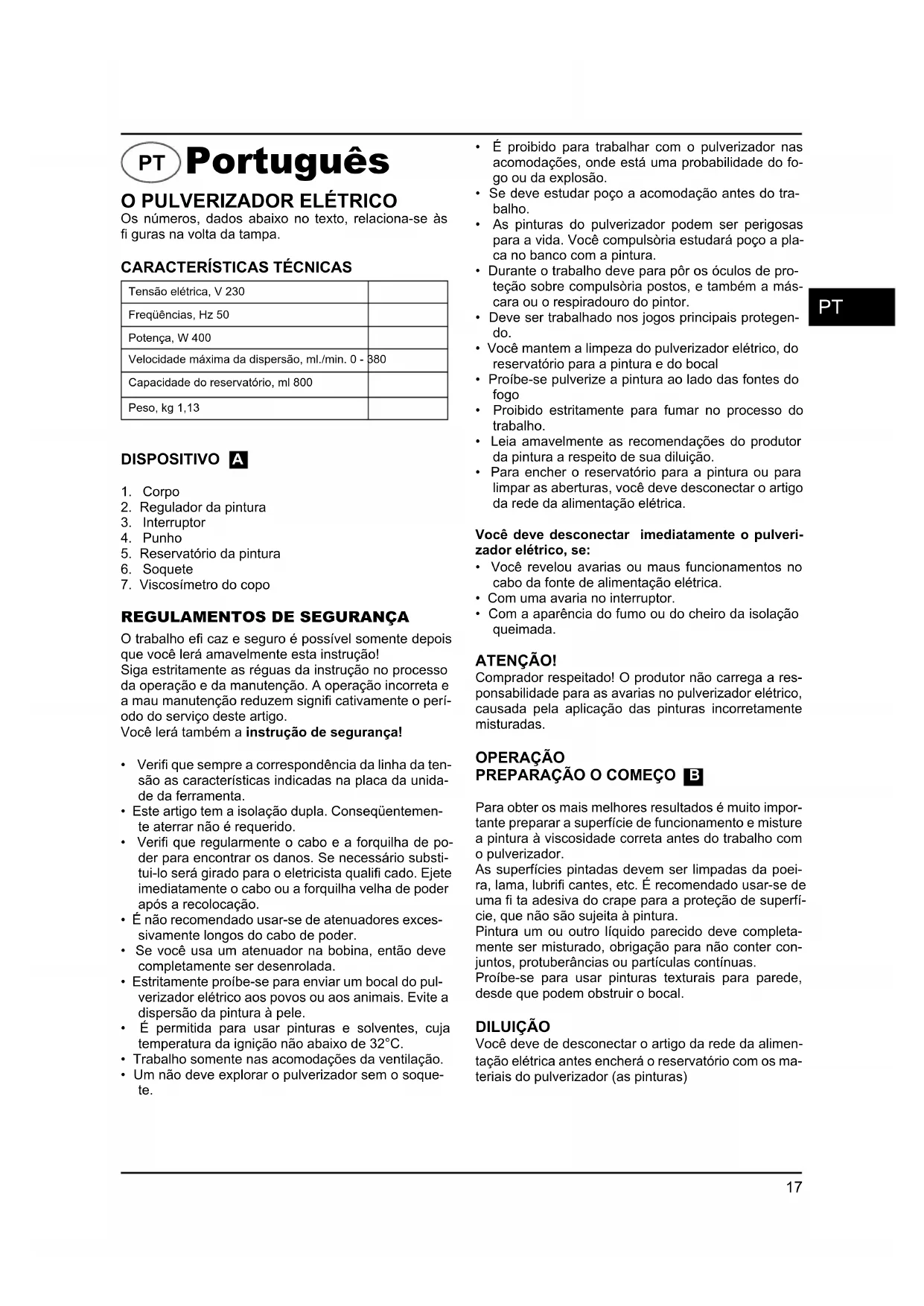 - Para encher o reservatório para a pintura ou para limpar as aberturas, você deve desconectar o artigo da rede da alimentação elétrica.