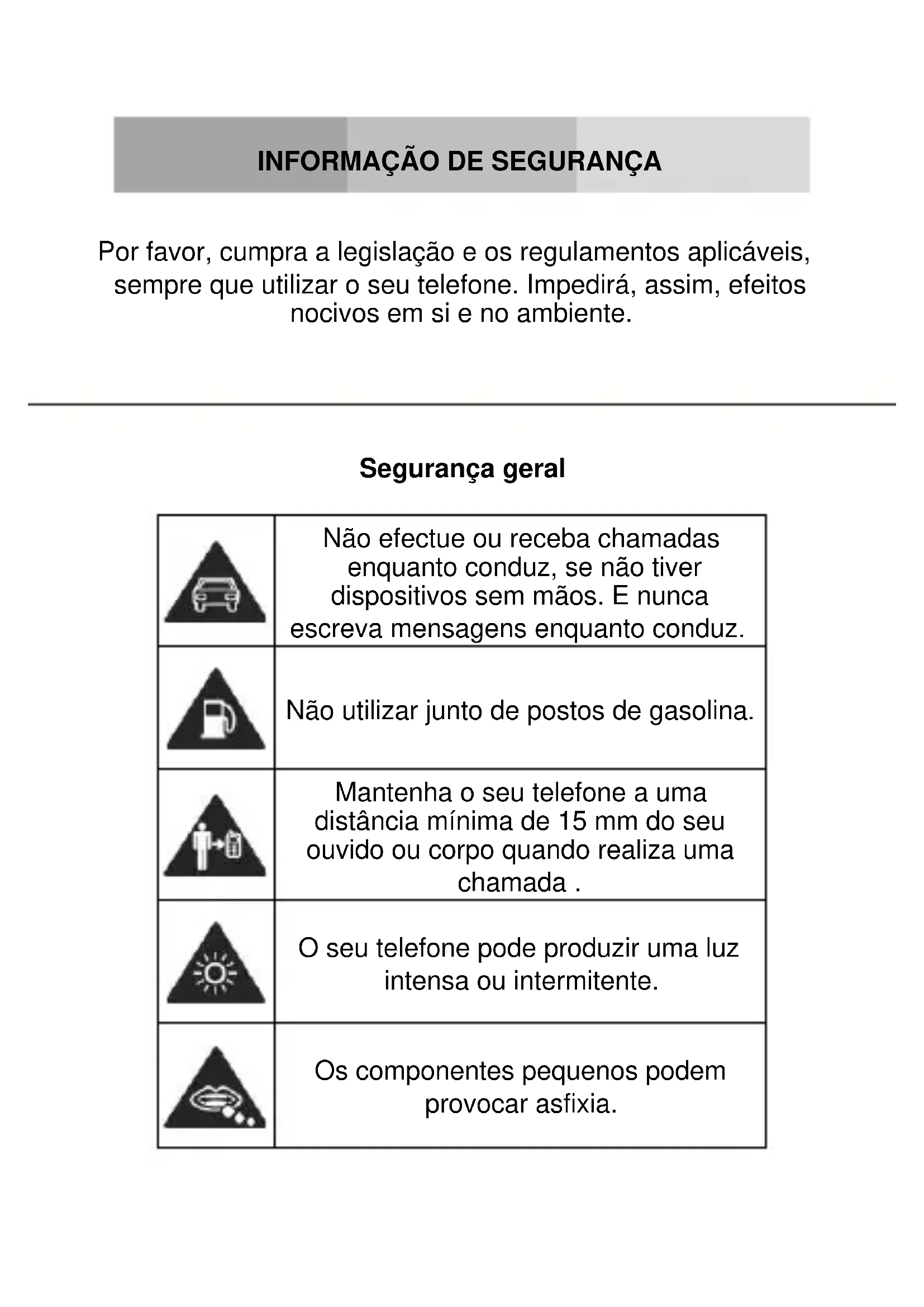 Desligue-o quando solicitado em aeronaves e aeroportos.Não desmonte o seu telefone. Desligue- o quando próximo de materiais ou líquidos explosivos.