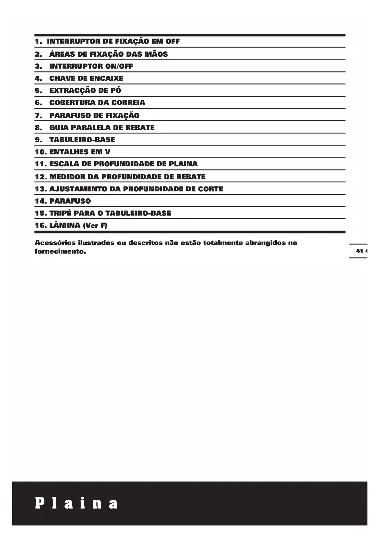 AVISO: 1. Retire o cabo de alimentação da tomada antes de efetuar quaisquer ajustamentos ou de mudar as lâminas.