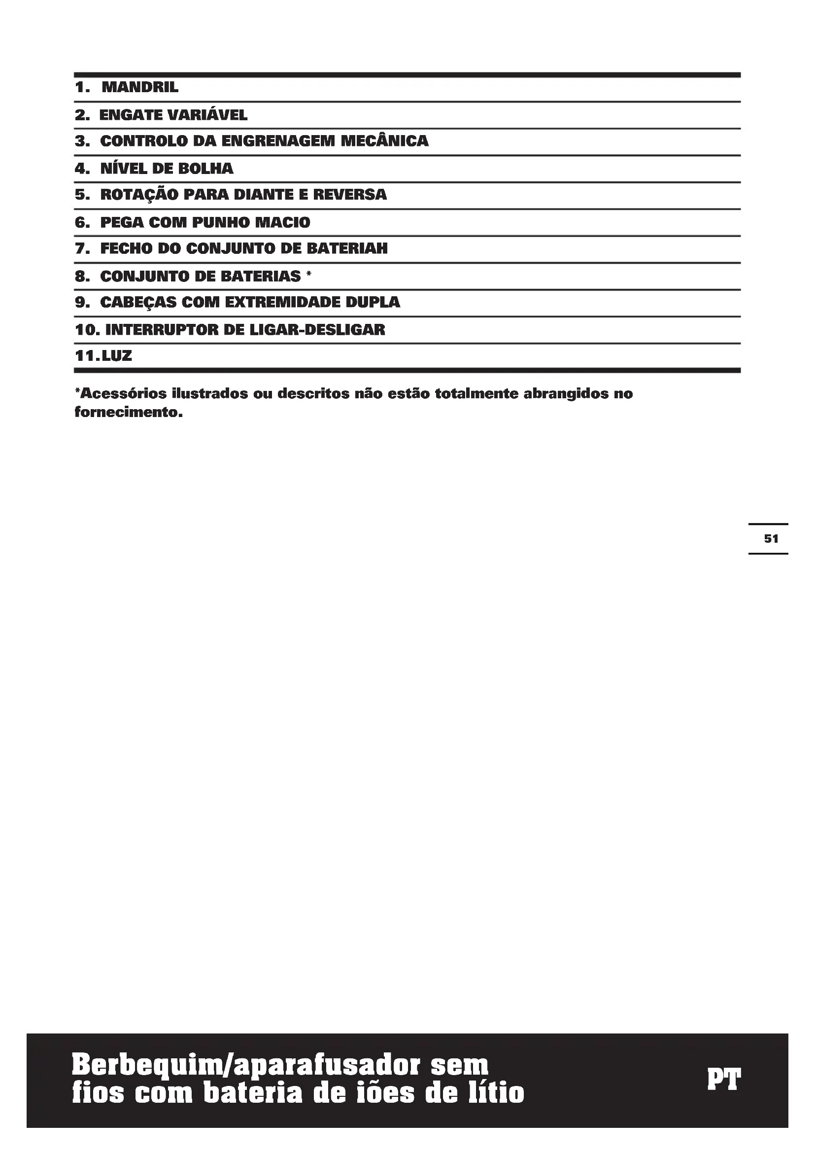 *Acessórios ilustrados ou descritos não estão totalmente abrangidos no fornecimento.Berbequim/aparafusador sem fios com bateria de iões de lítio
