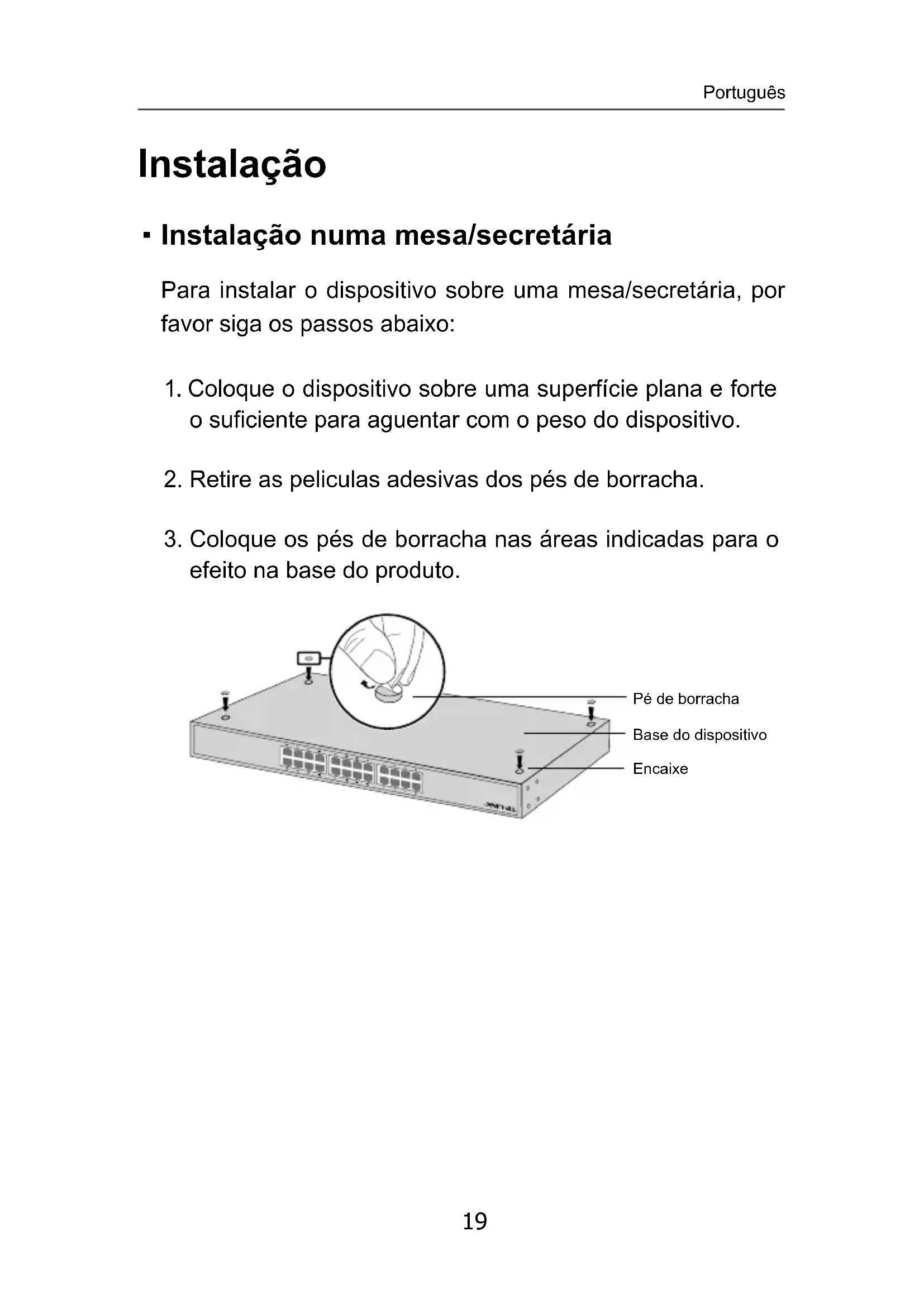 efeito na base do produto. Pé de borracha Base do dispositivo Encaixe Português20