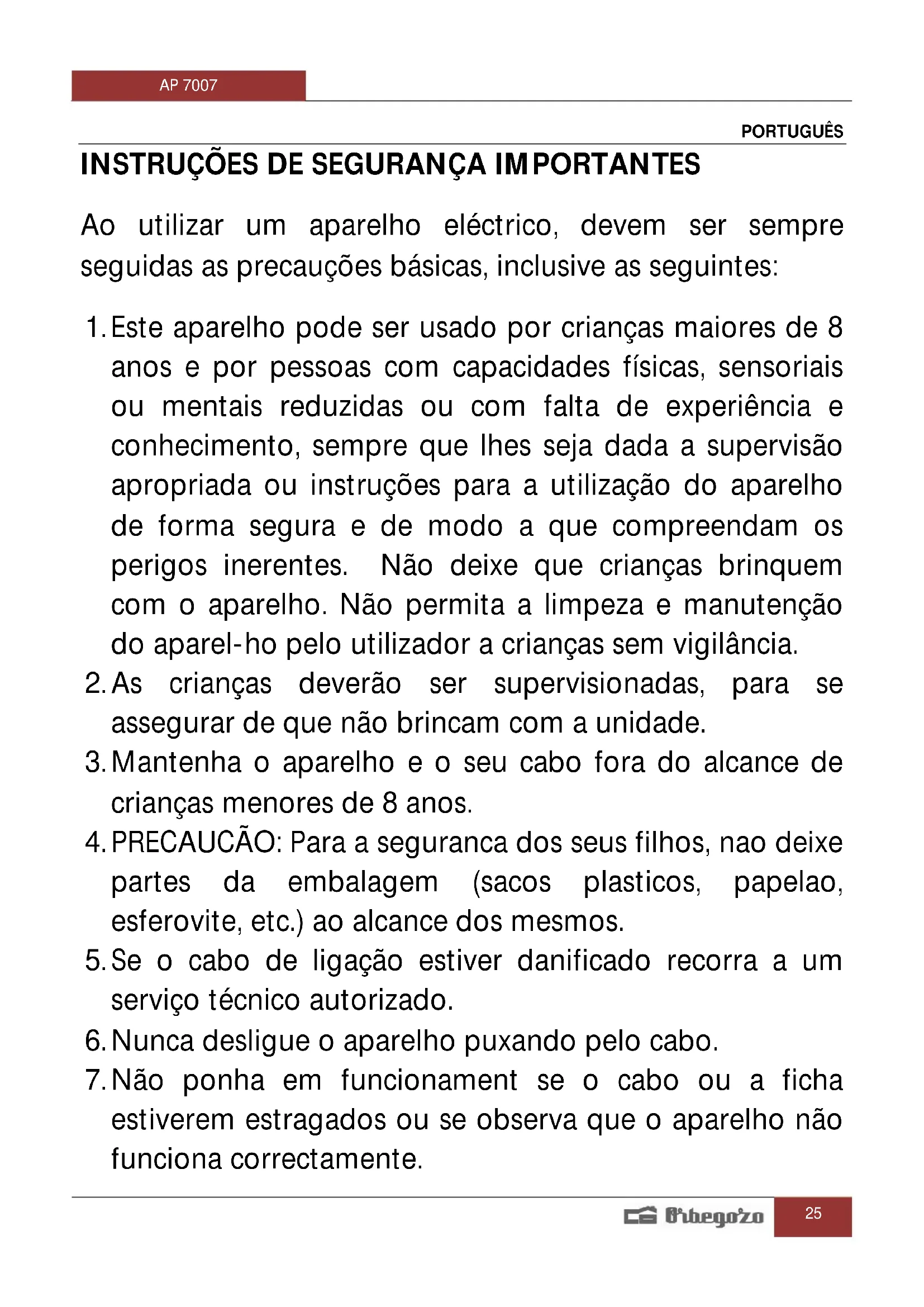 MANUAL DE UTILIZADOR AP 7007 Orbegozo