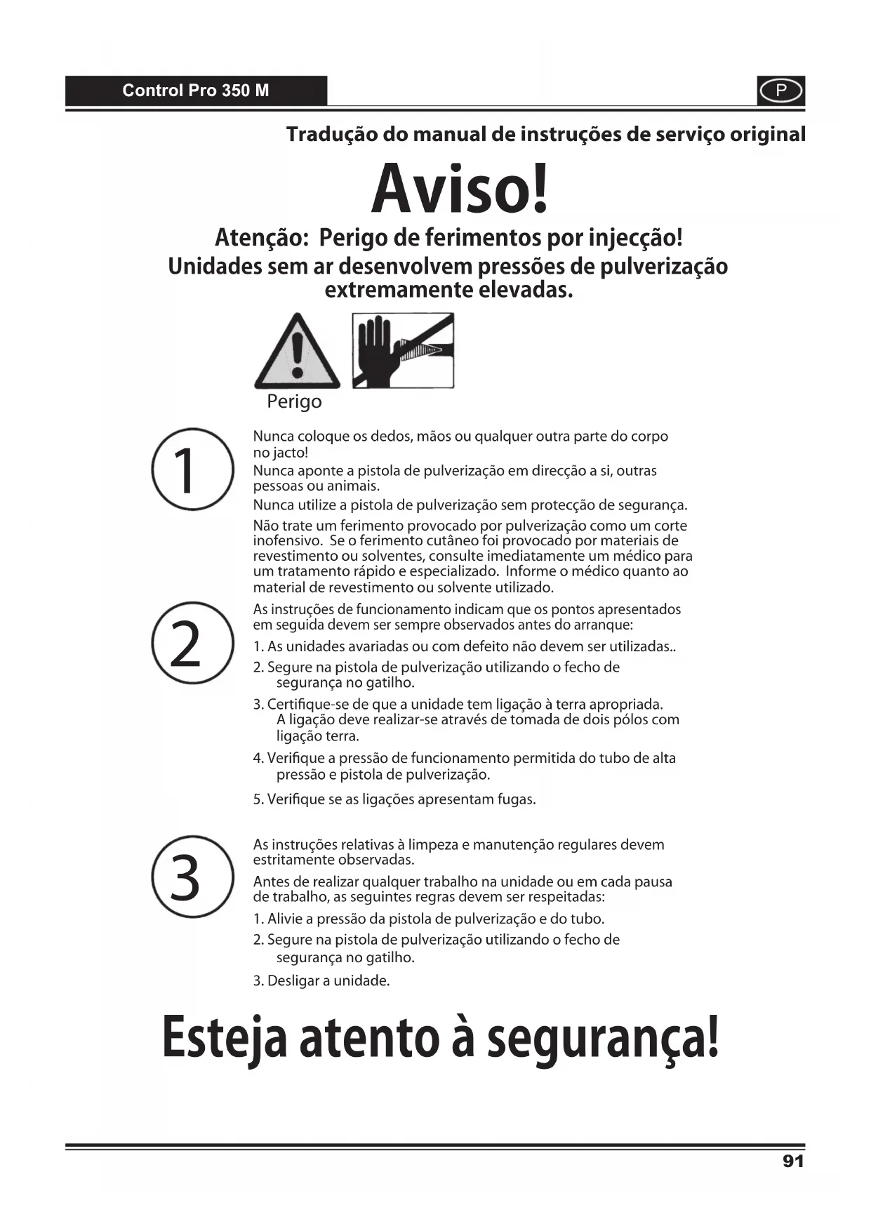Atença: Perigo de ferimentos por injecção! Unidades sem ar desenvolvimento pressões de pulverização extremamente elevadas.