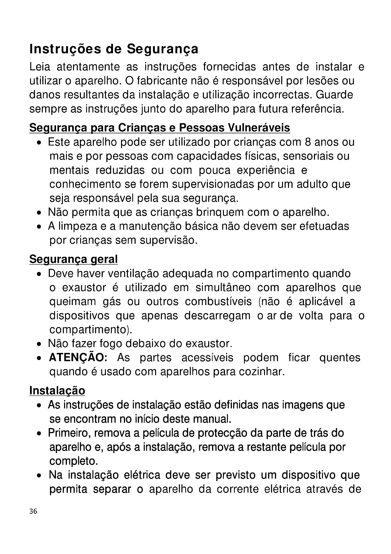 - A limpeza e a manutenção básica não devem ser efetuadas por crianças sem supervisão. Segurança geral