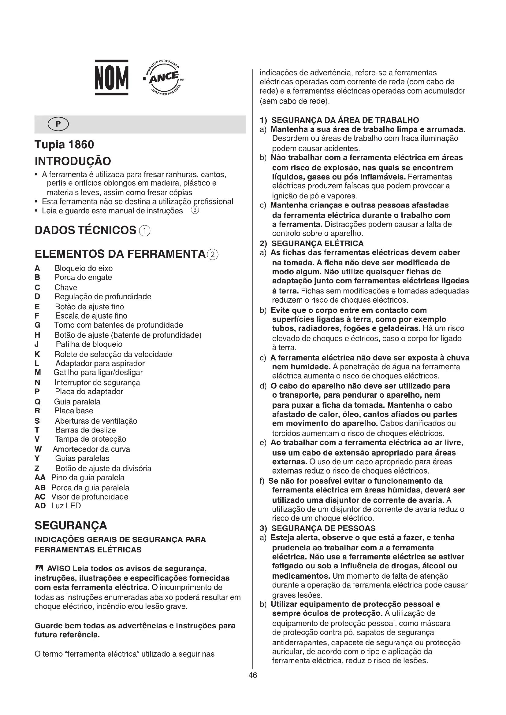 INDICAZOS GERAIS DE SEGURANCA PARA FERRAMENTAS ELETRicas