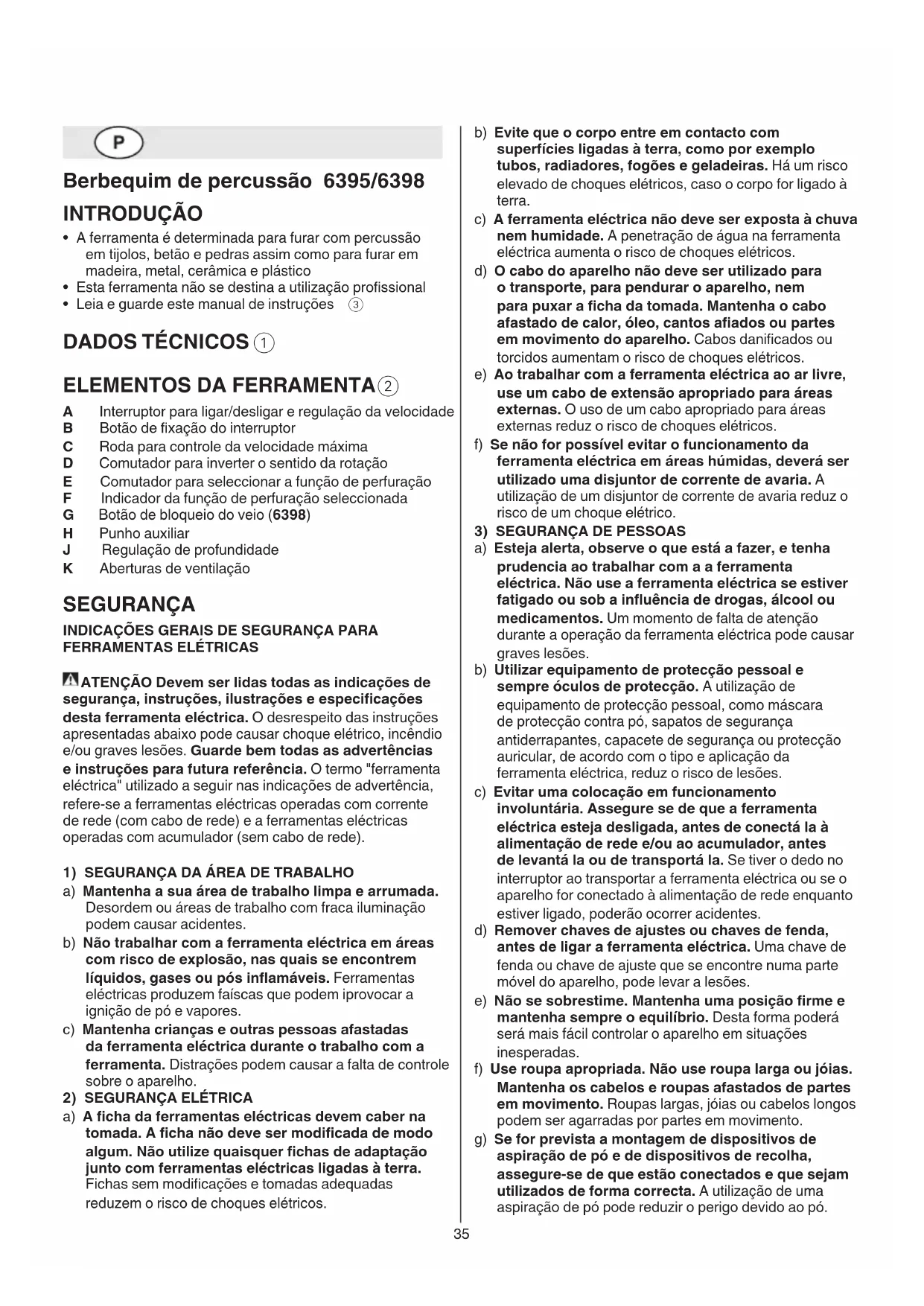 - Em caso de anomalias electricas ou mecânicas, désigne imeditamente a ferramenta e tire a ficha da tomada
