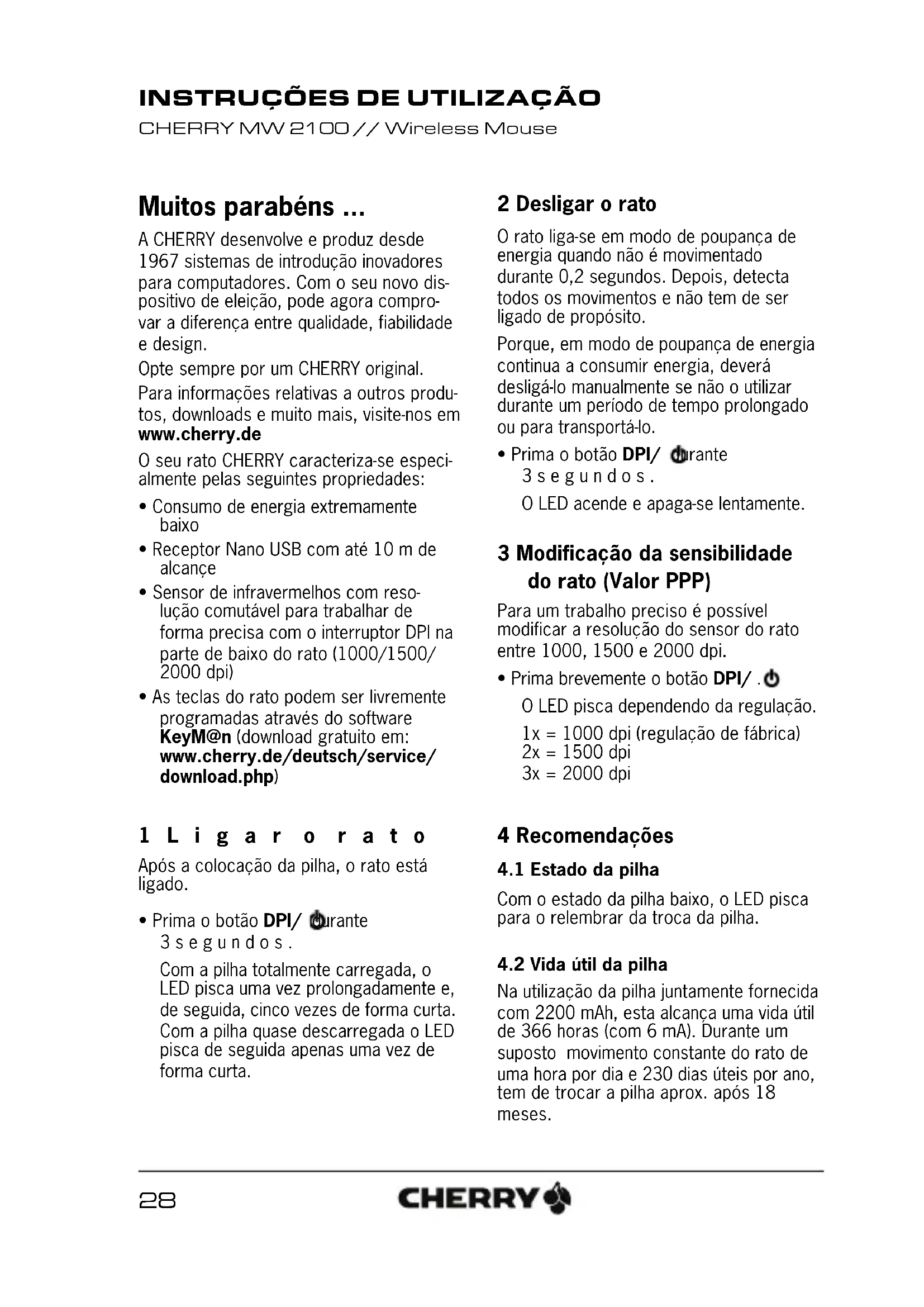 MW 2100 - Rato Cherry - Manual de utilização gratuito