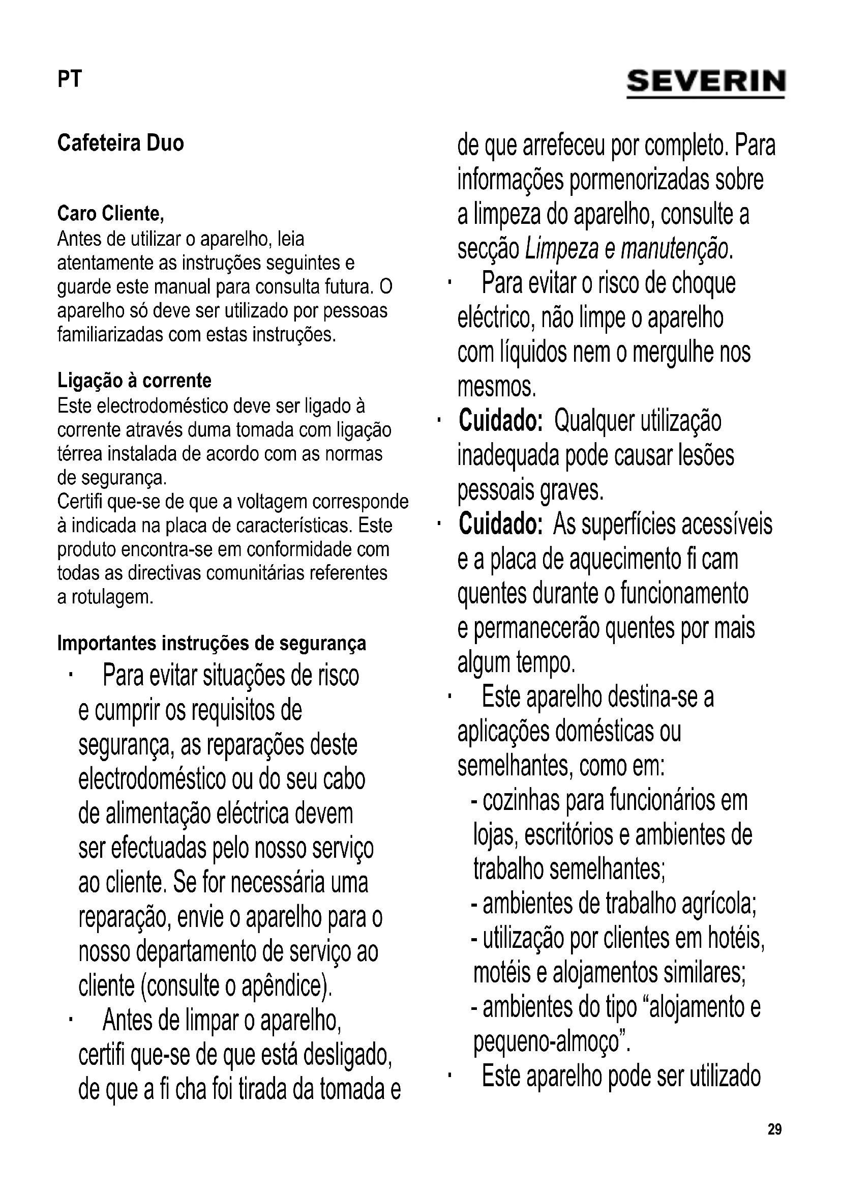 KA 5800 - Máquina de café SEVERIN - Manual de utilização gratuito
