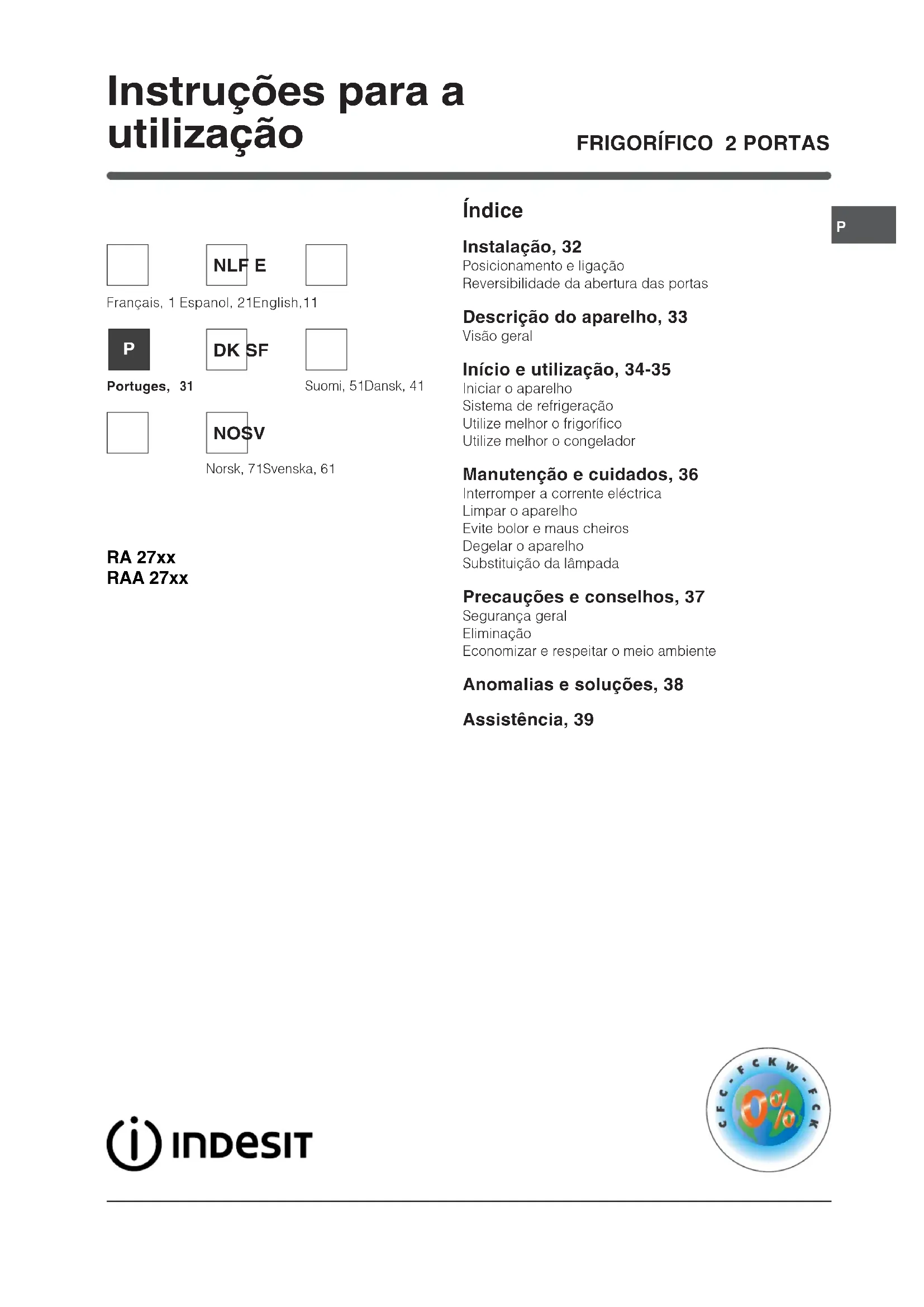 RAA 27 IX (0) - Geladeira INDESIT - Manual de utilização gratuito