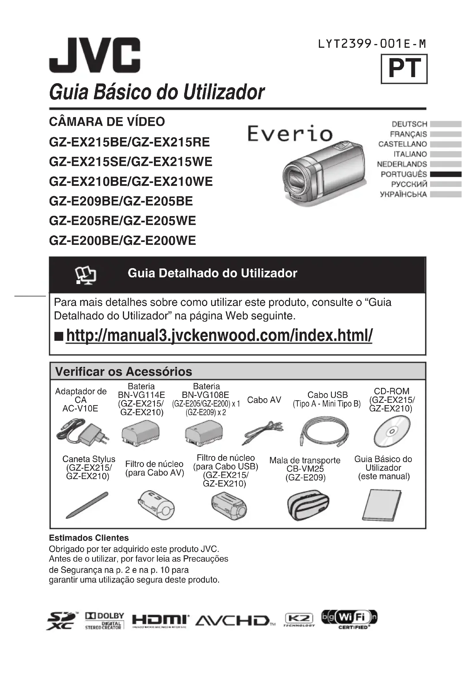 Baixe as instruções para o seu Filmadora em formato PDF gratuitamente! Encontre o seu manual Everio GZE209BE - JVC e retome o controlo do seu dispositivo eletrónico. Nesta página estão publicados todos os documentos necessários para a utilização do seu dispositivo. Everio GZE209BE da marca JVC.
