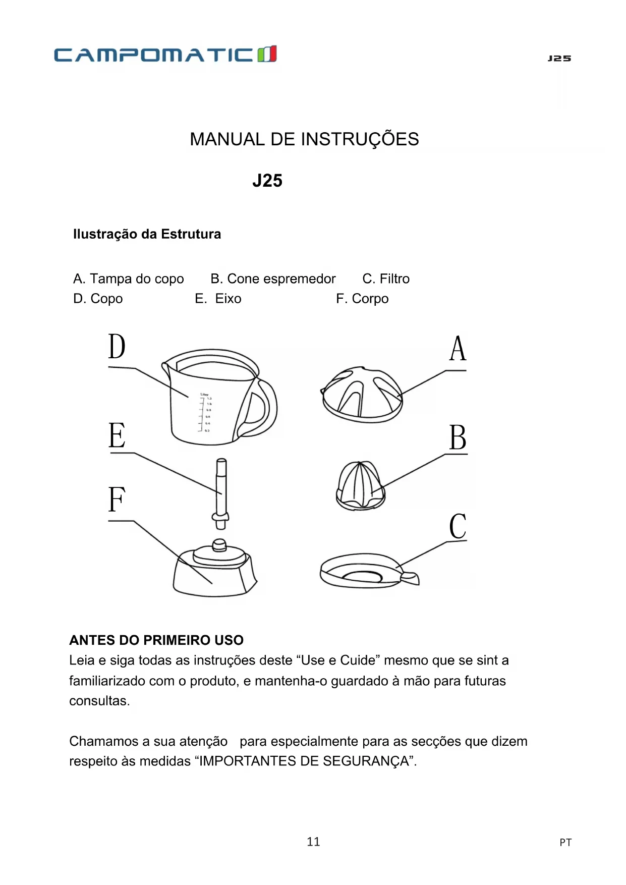 J25 - Espremedor de sucos Campomatic - Manual de utilização gratuito