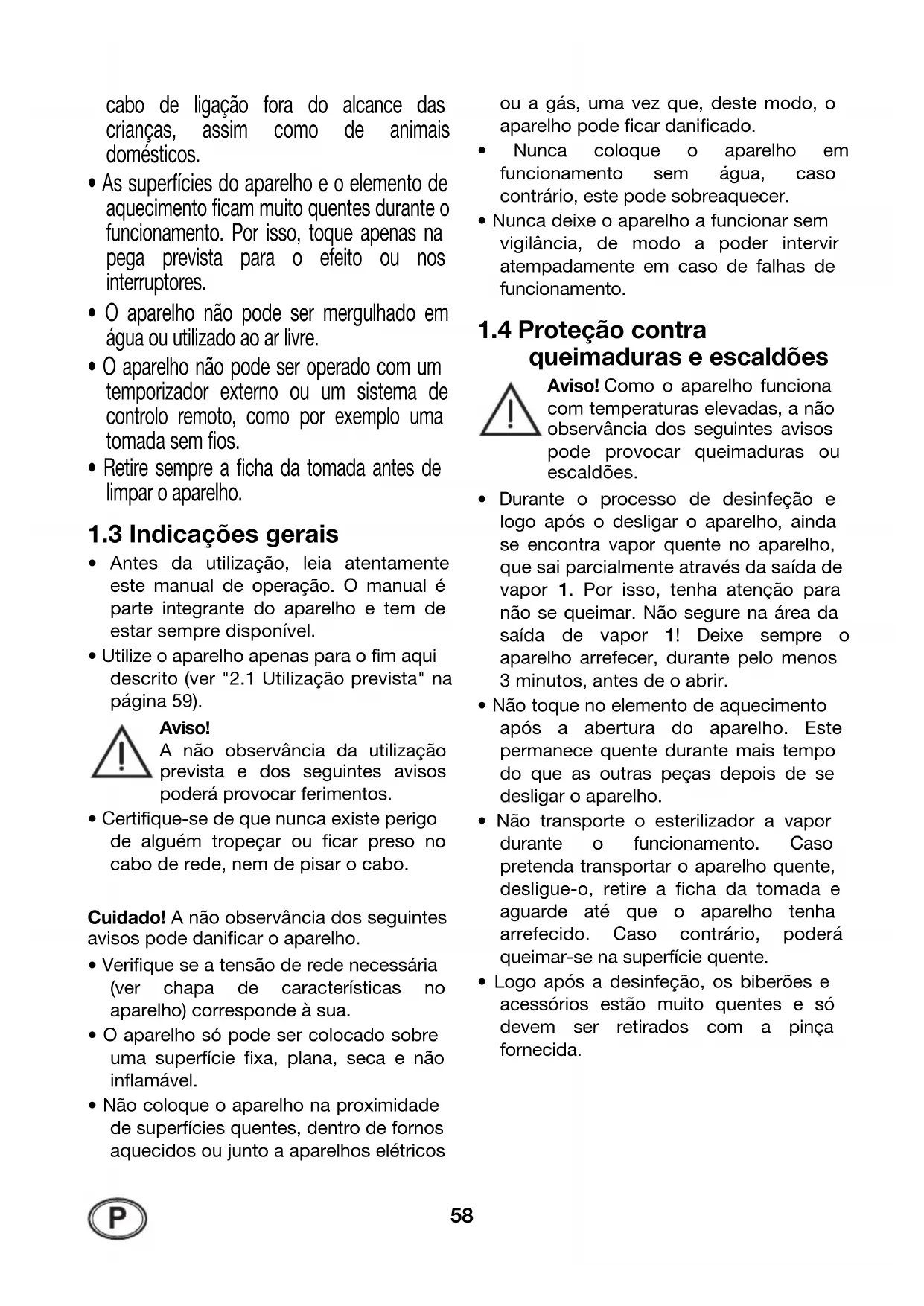 - Utilize o aparelho apenas para o fim aqui descrito (ver "2.1 Utilização prevista" na página 59). Aviso! A não observância da utilização prevista e dos seguintes avisos poderá provocar ferimentos.