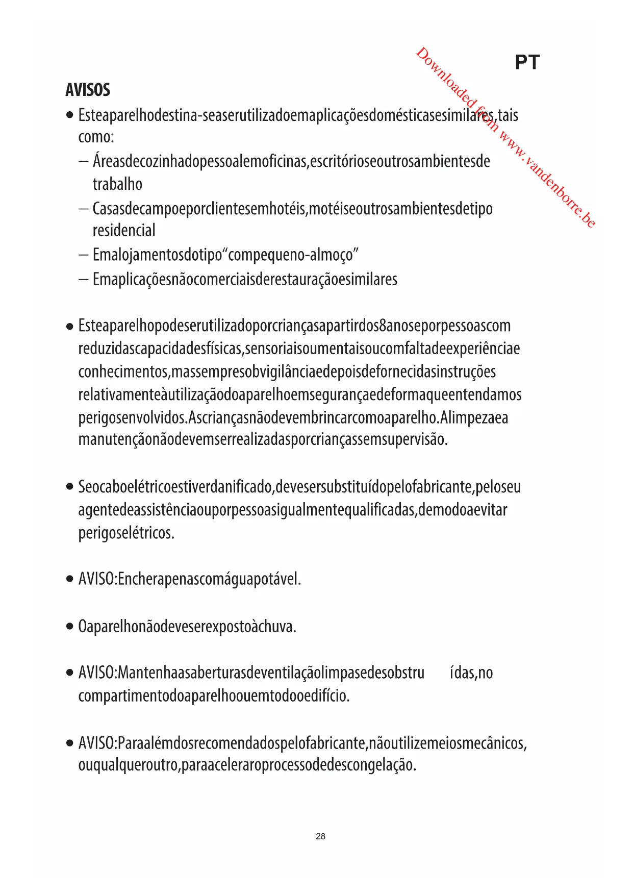 Downloaded from www.vandenborre.be• Aviso: Risco de fogo/materiais inflamáveis.