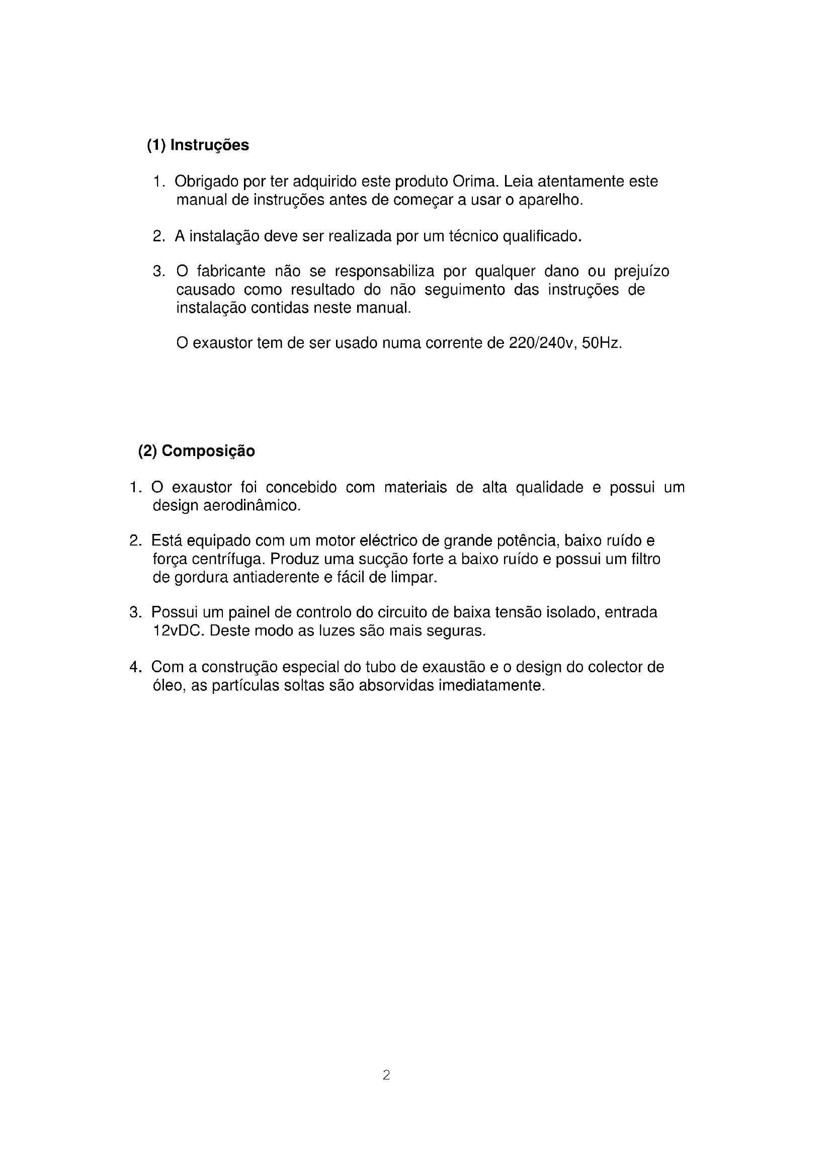 1. Obrigado por ter adquirido este produto Orima. Leia atentamente este