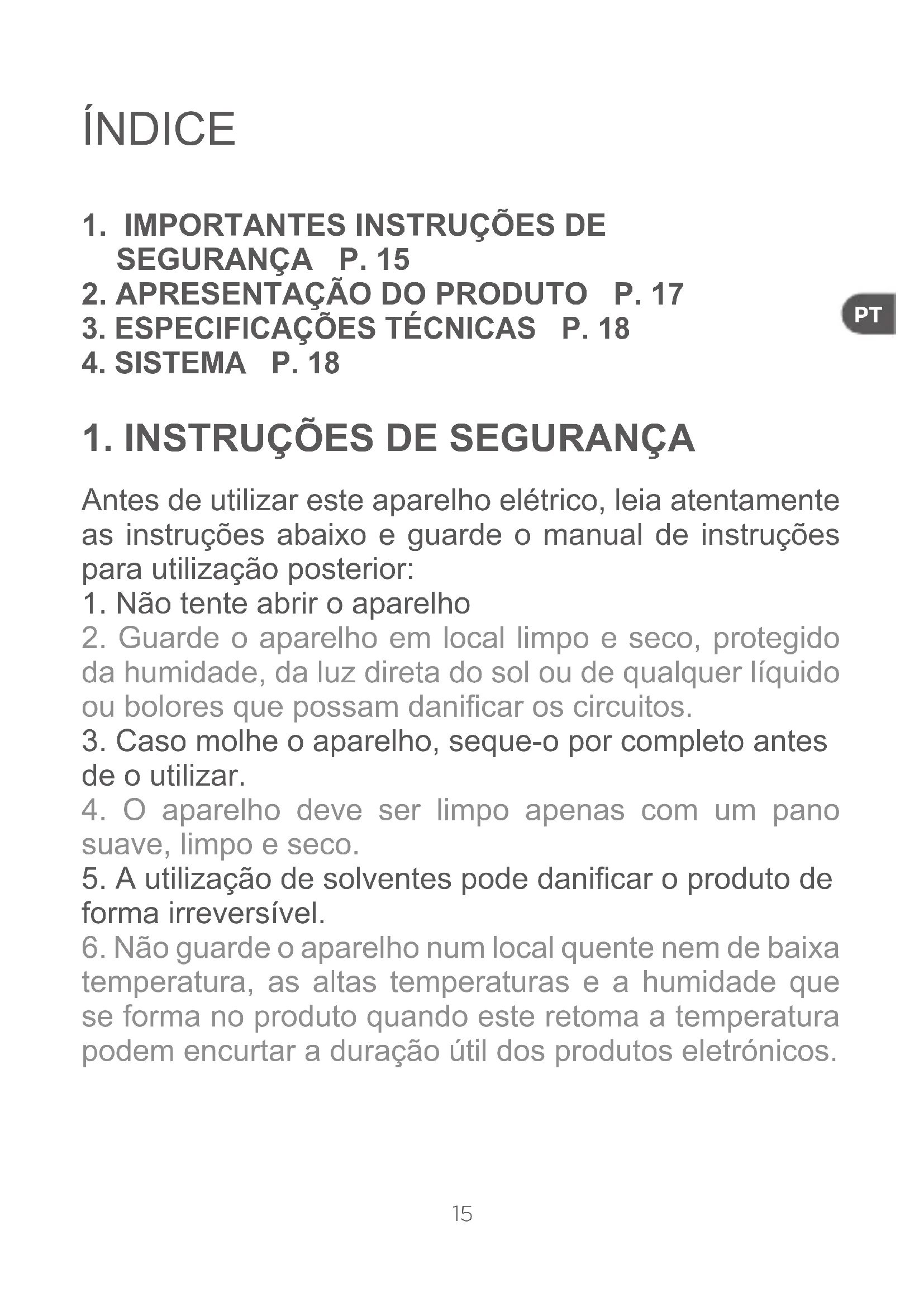 da humidade, da luz direta do sol ou de qualquer líquido ou bolores que possam danicar os circuitos.