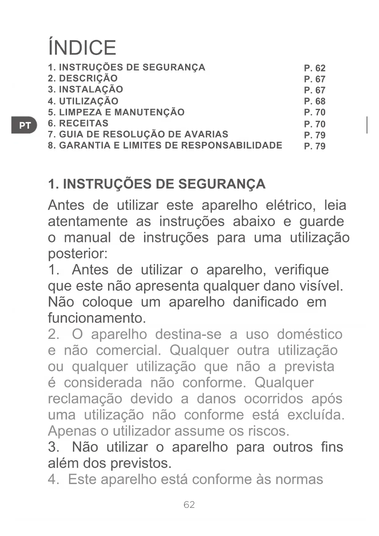2. O aparelho destina-se a uso doméstico