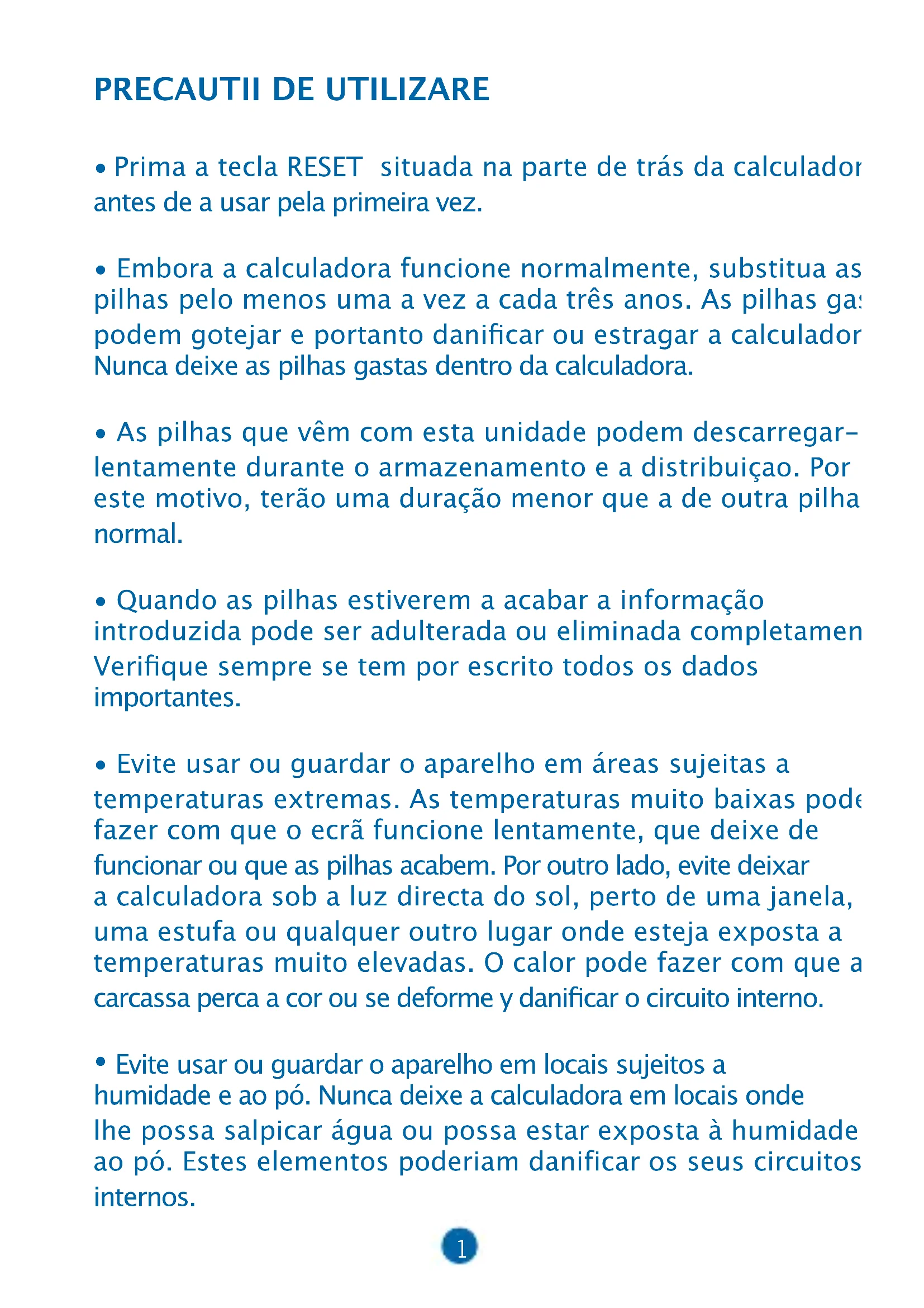 - Embora a calculadora funcione normalmente, substitua as pilhas pelo menos uma a vez a cada três anos. As pilhas gastas podem gotejar e portanto danicar ou estragar a calculadora. Nunca deixe as pilhas gastas dentro da calculadora.