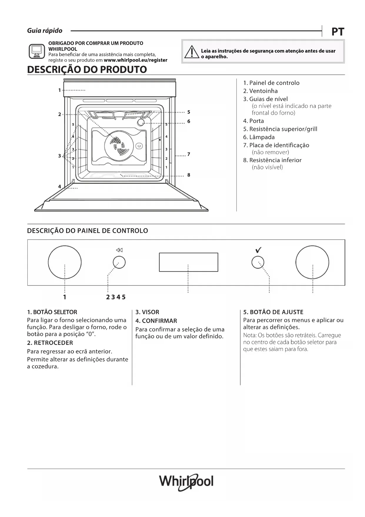 WHIRLPOOL Para beneciar de uma assistência mais completa, registe o seu produto em www . whirlpool . eu/ register Leia as instruções de segurança com atenção antes de usar o aparelho.