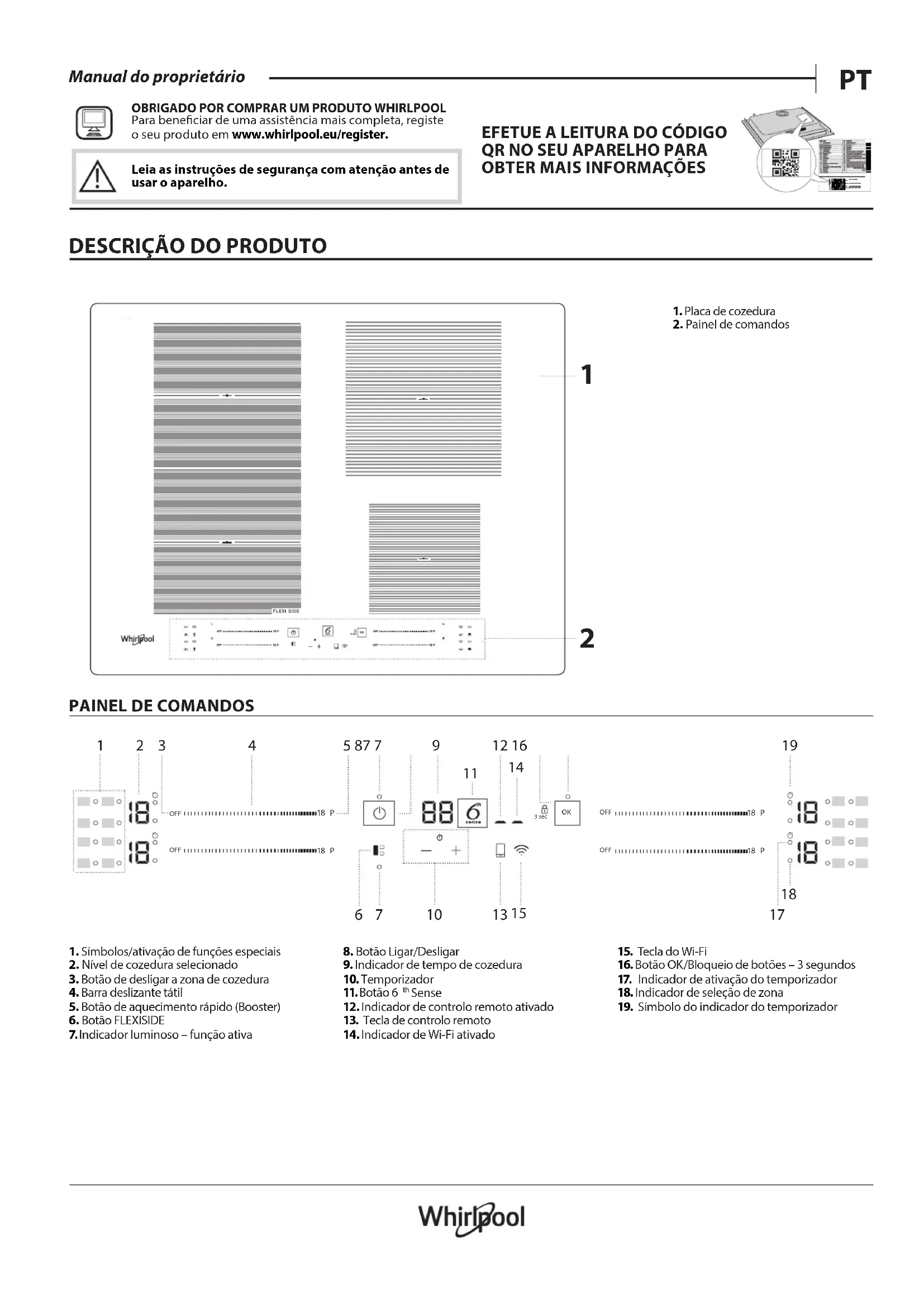 - Em alternativa, contacte o nosso Serviço Pós-venda (através do número de telefone contido no livrete da garantia). Ao contactar o nosso Serviço Pós-Venda, indique os códigos fornecidos na placa de identicação do seu produto. ®/TM/© 2024 Whirlpool. Produzido sob licença.