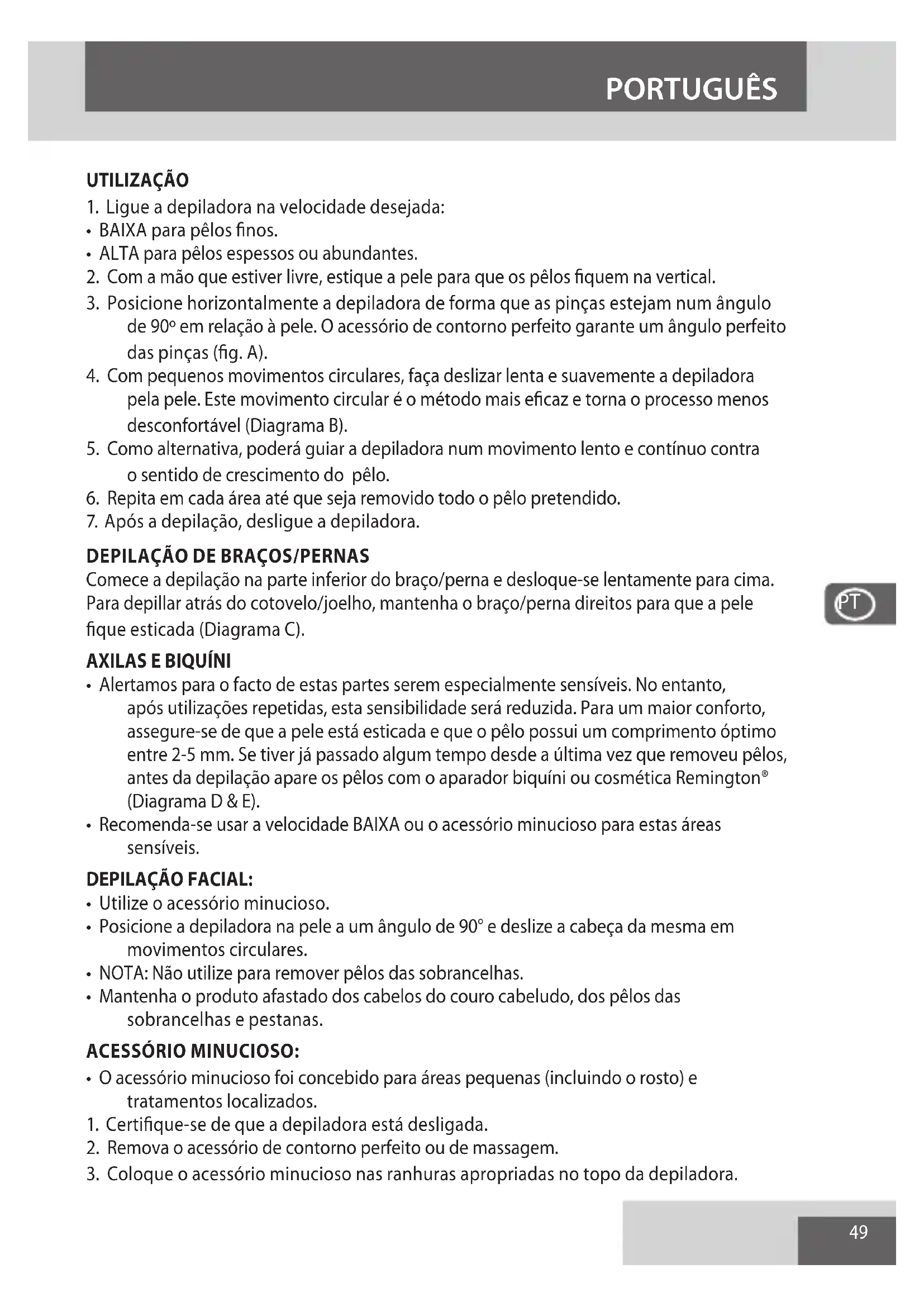 - NOTA: Não utilize para remover pêlos das sobrancelhas.