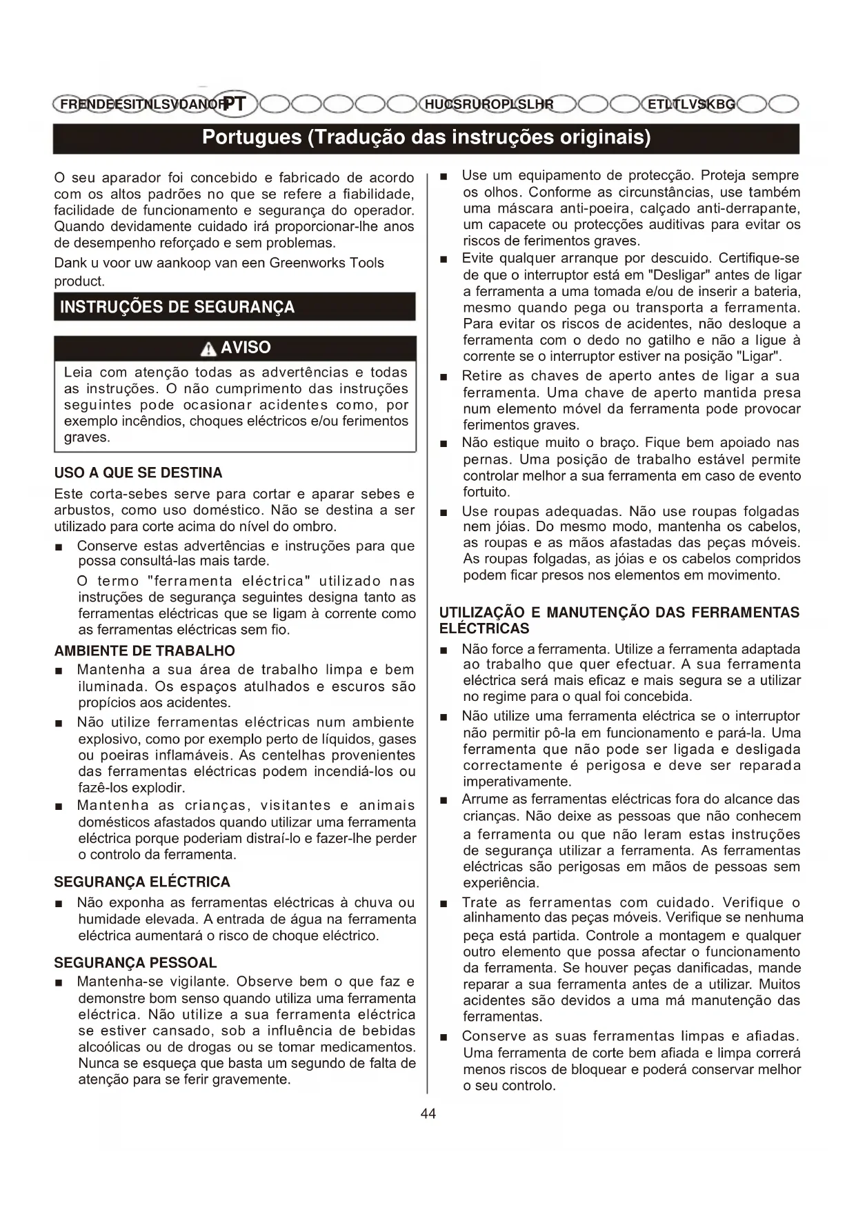 MANUAL DE UTILIZADOR G24HT57 GREENWORKS