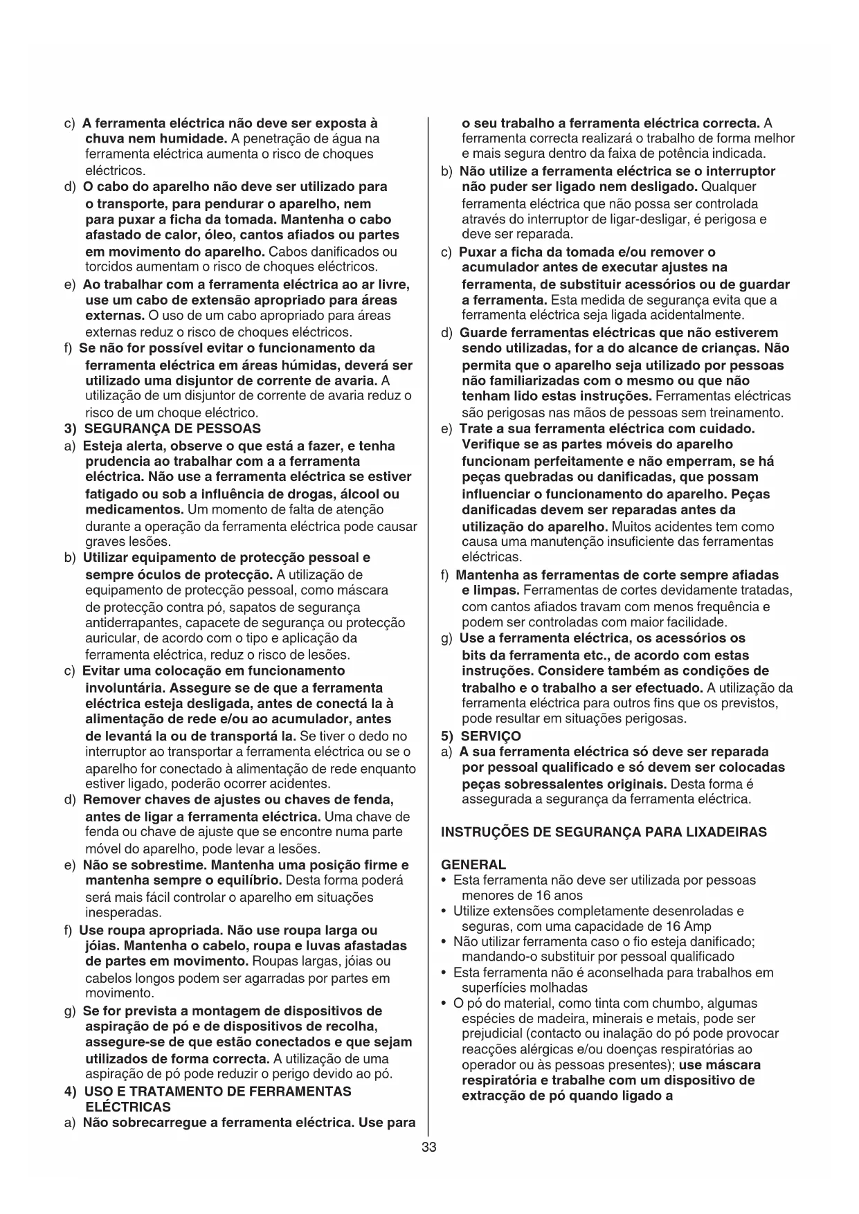 a) A sua ferramenta eléctrica só deve ser reparada por pessoal qualicado e só devem ser colocadas peças sobressalentes originais. Desta forma é assegurada a segurança da ferramenta eléctrica. INSTRUÇÕES DE SEGURANÇA PARA LIXADEIRAS GENERAL