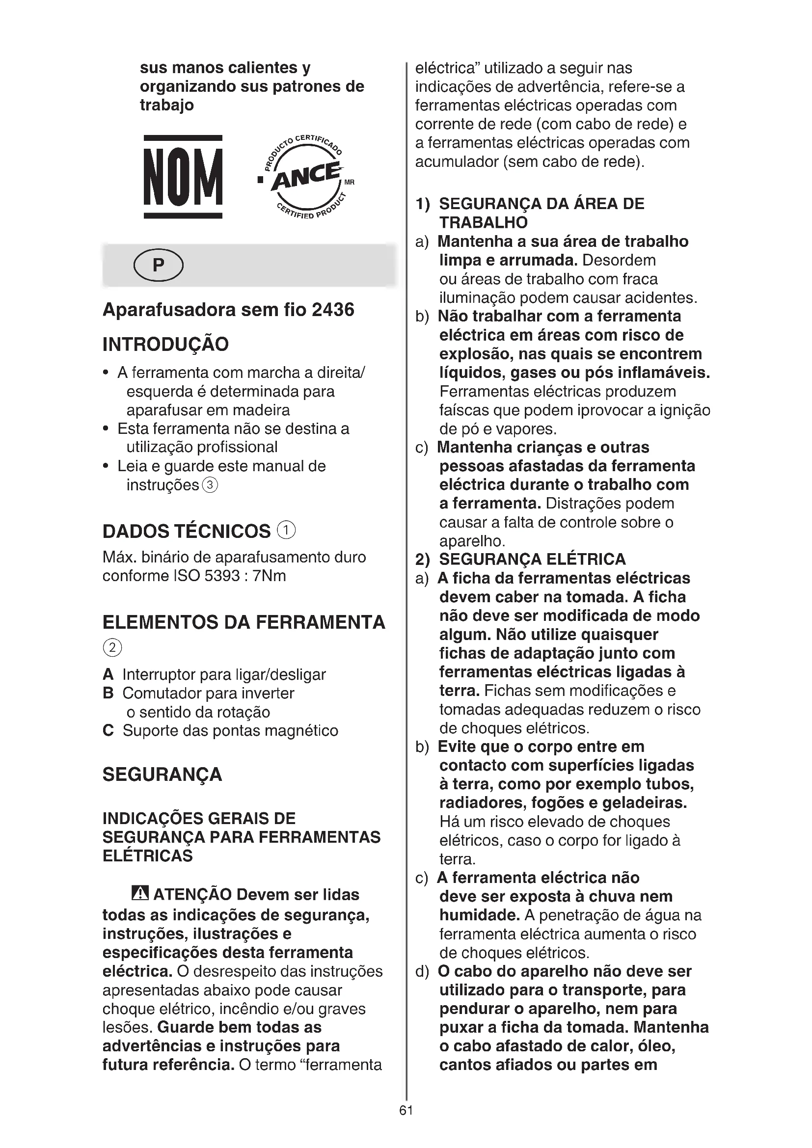 Aparafusadora sem o 2436 INTRODUÇÃO