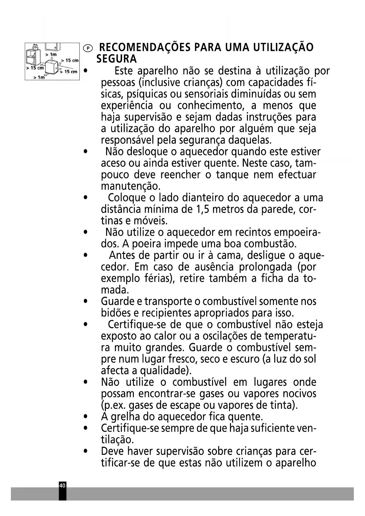 - Se tiver crianças em casa, familiarize-as com o aquecedor, mostrando-lhes o calor que irradia e acautelando-as para as partes que ficam par- ticularmente quentes.