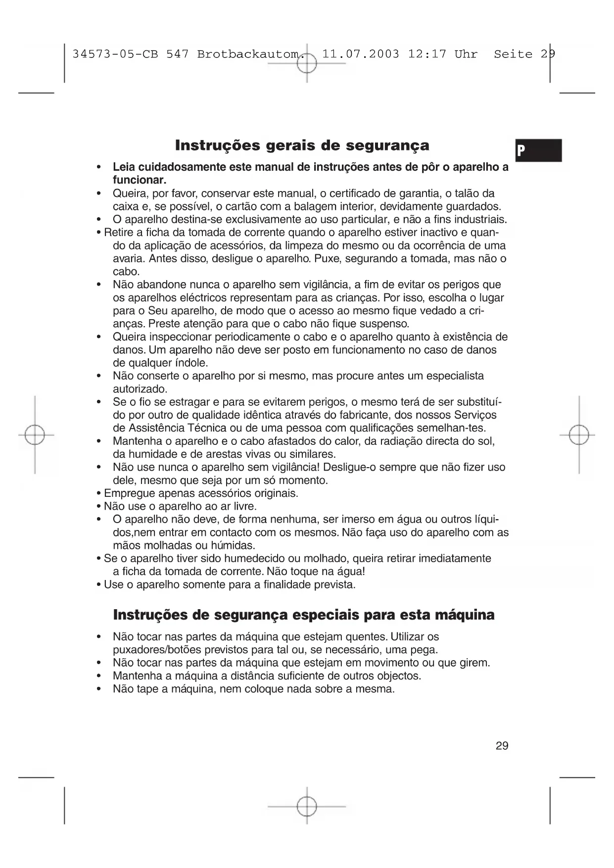 34573-05-CB 547 Brotbackautom. 11.07.2003 12:17 Uhr Seite 31Introduzir e retirar a forma Introdução: introduzir a forma girando-a ligeiramente (aprox. 10º) para a esquerda, pressionar um pouco e girar para a direita, até ficar direita e bem fixa. Retirar: girar a forma aproximadamente 10º para a direita e puxá-la com cuidado para cima. Codezura de pães