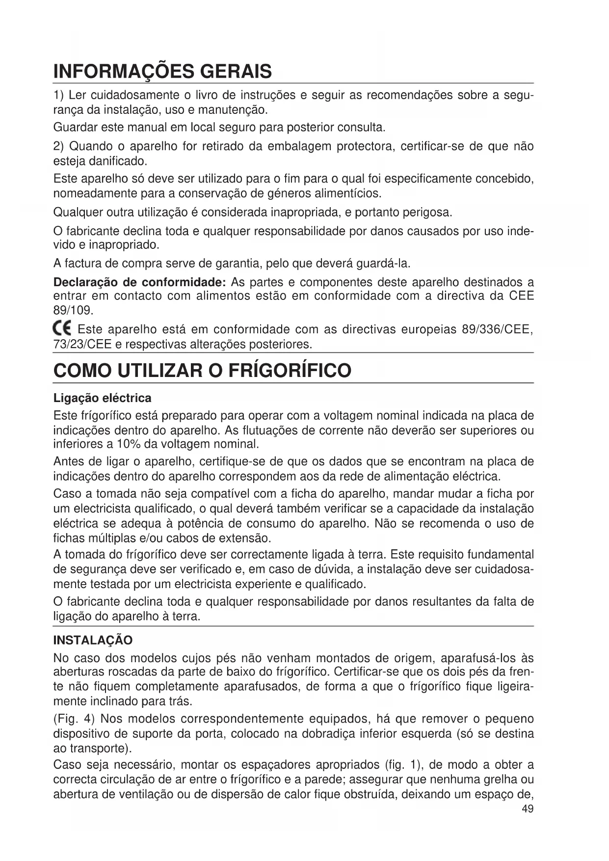 CE Este aparecido está em conformidade com as direcitas europeias 89/336/CEE, 73/23/CEE e respectivas alteracoes posteriores.
