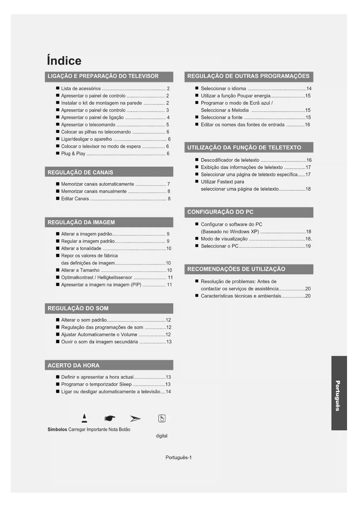 - Regulação das programações de som p. 12