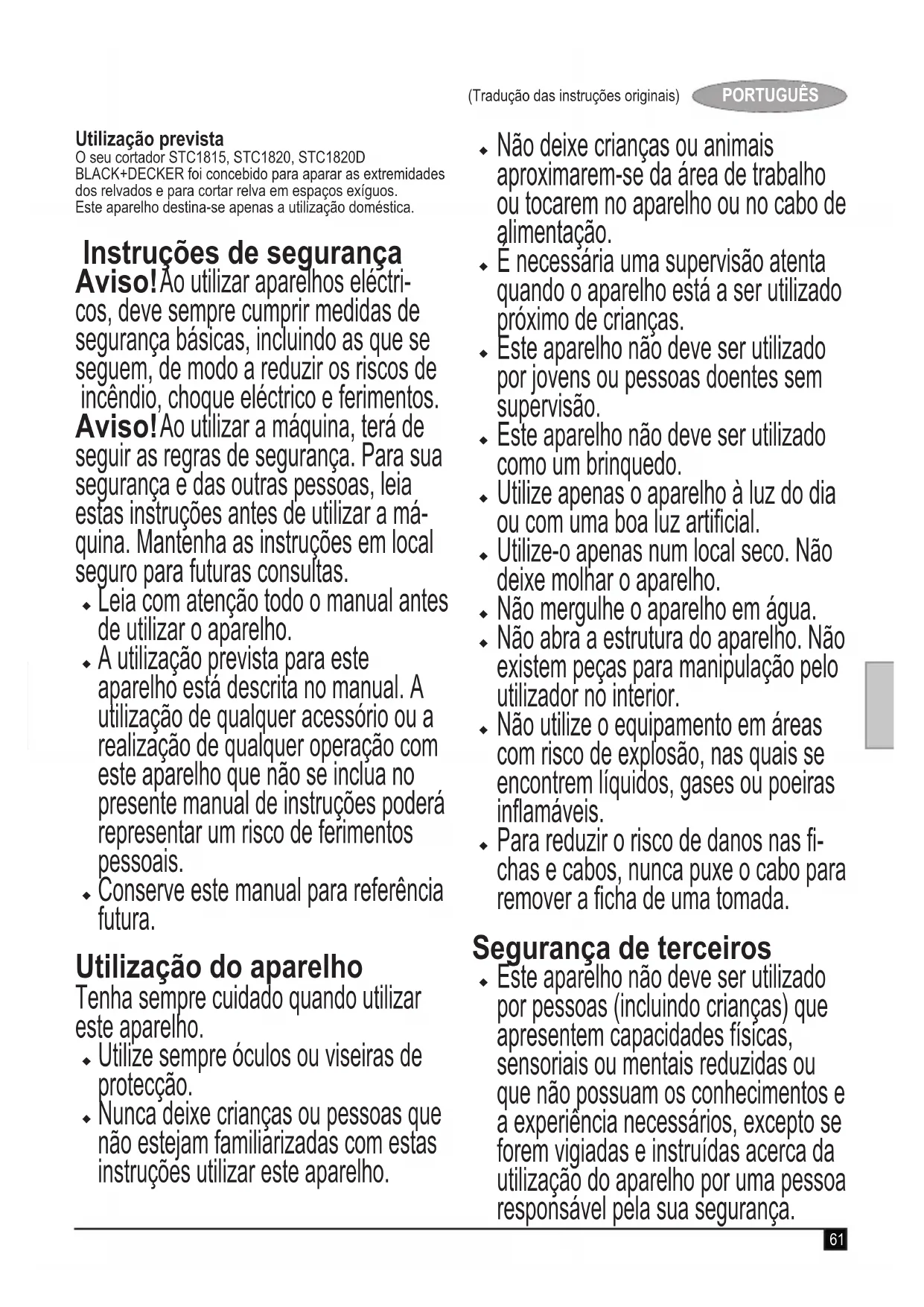 MANUAL DE UTILIZADOR STC1815 BLACK & DECKER