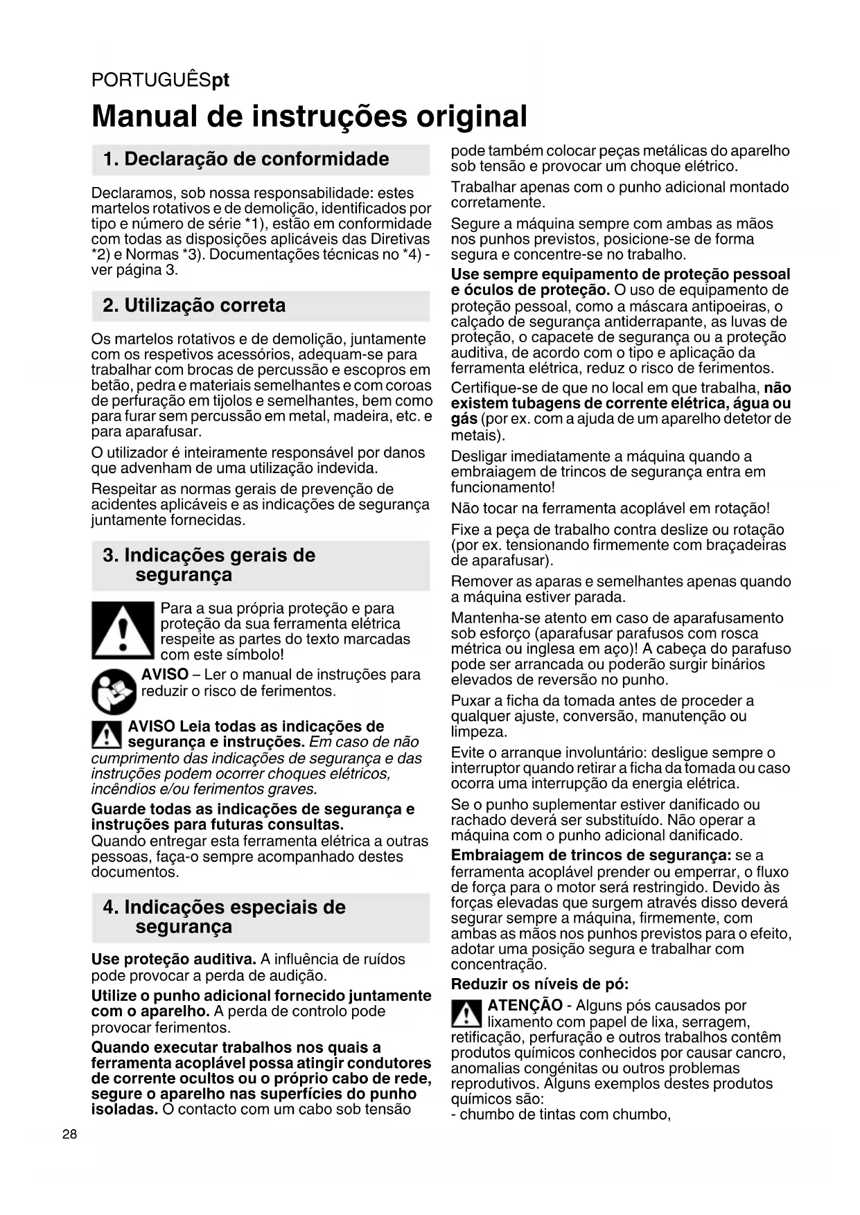 Declaramos, sob)nossa responsabilitadede estemartelos rotativos e de demolicao,identificados portipoe numero de série *1),estao em conformidadecom todas as dispositions aplicaveis das Diretivas*2) e Normas *3).Documentacoes tecnicas no *4)-ver pagsina 3.
