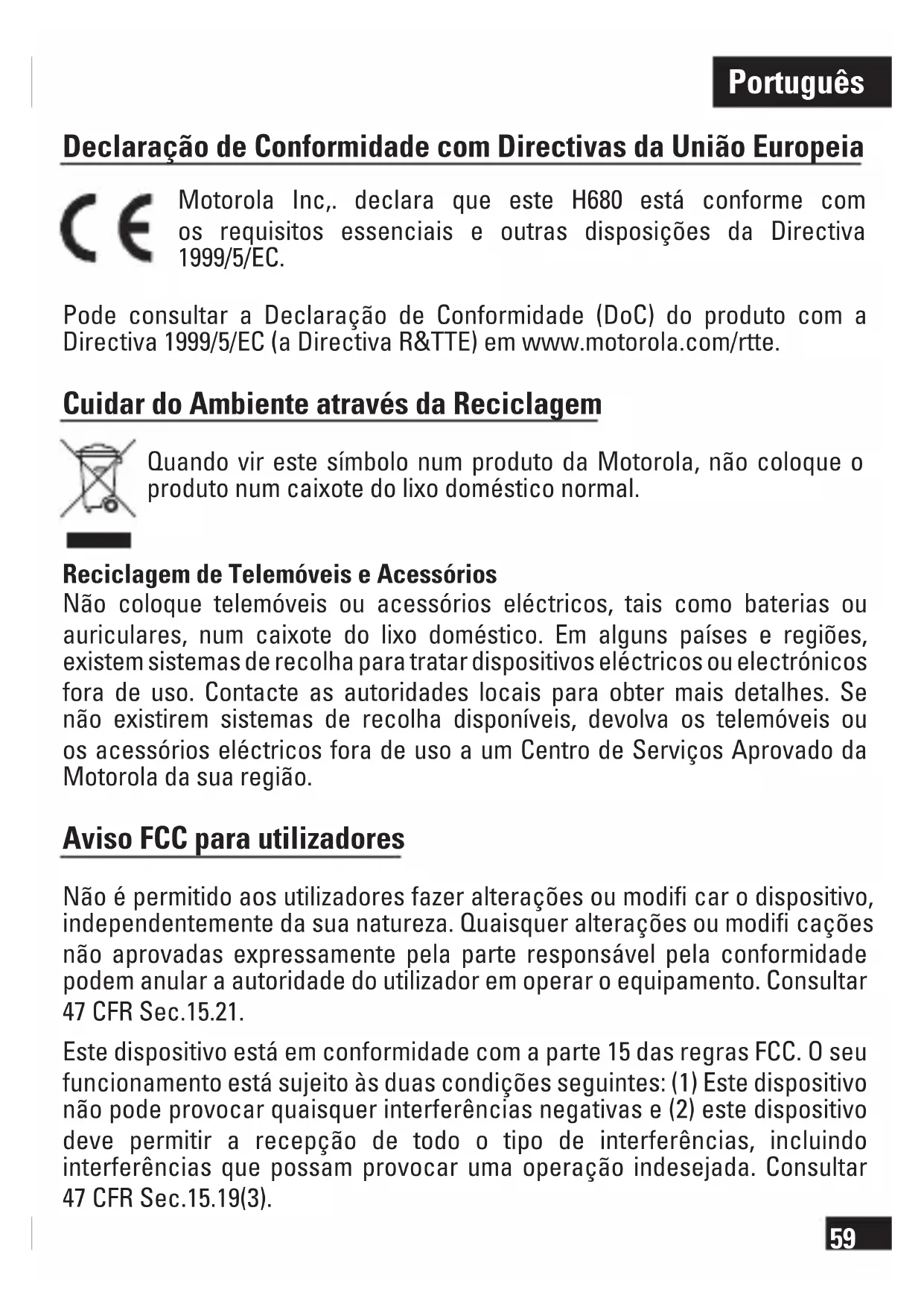 MANUAL DE UTILIZADOR H680 MOTOROLA
