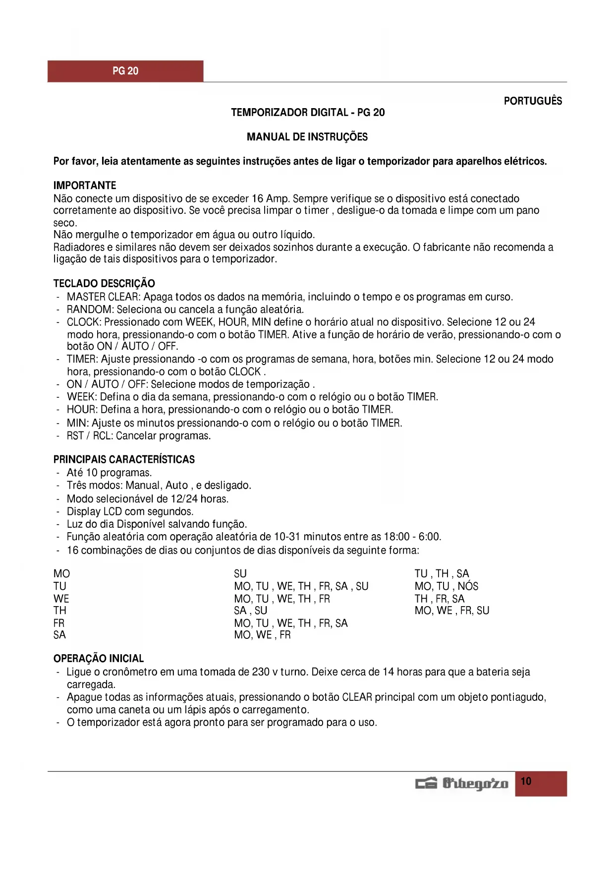 PG 20 - Temporizador elétrico Orbegozo - Manual de utilização gratuito