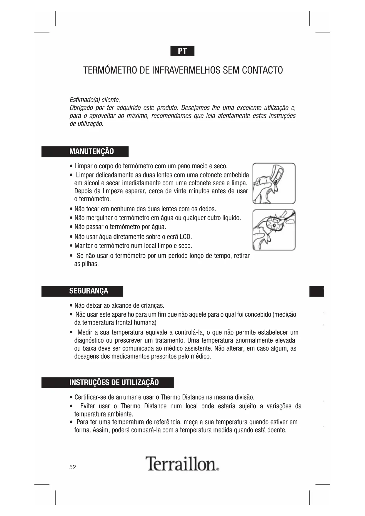- Manter o termómetro num local limpo e seco.