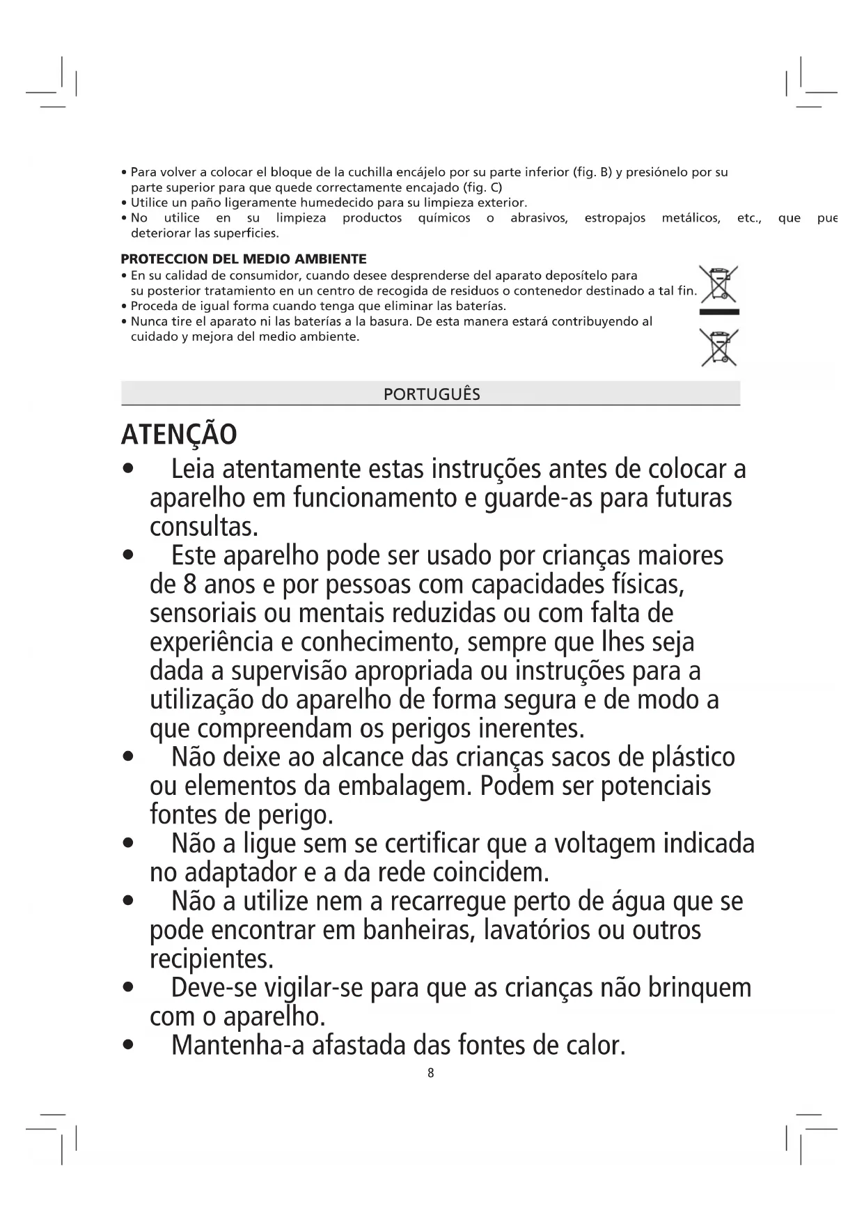 - Este aparelho pode apresentar restos de bras naturais nas lâminas devido ao controlo de qualidade unitário de corte.