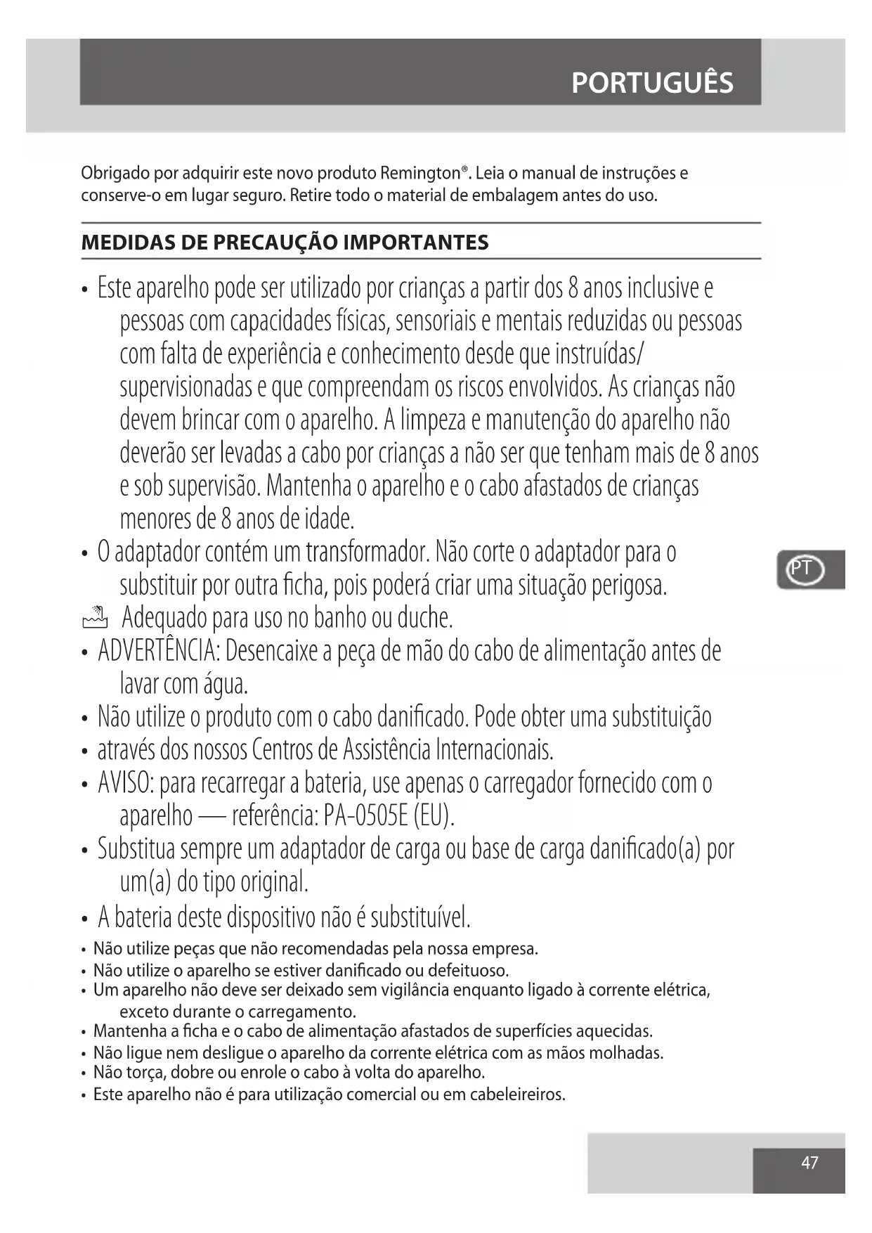 Encontre gratuitamente o manual do aparelho TSeries Ultimate MB7000 REMINGTON em formato PDF.