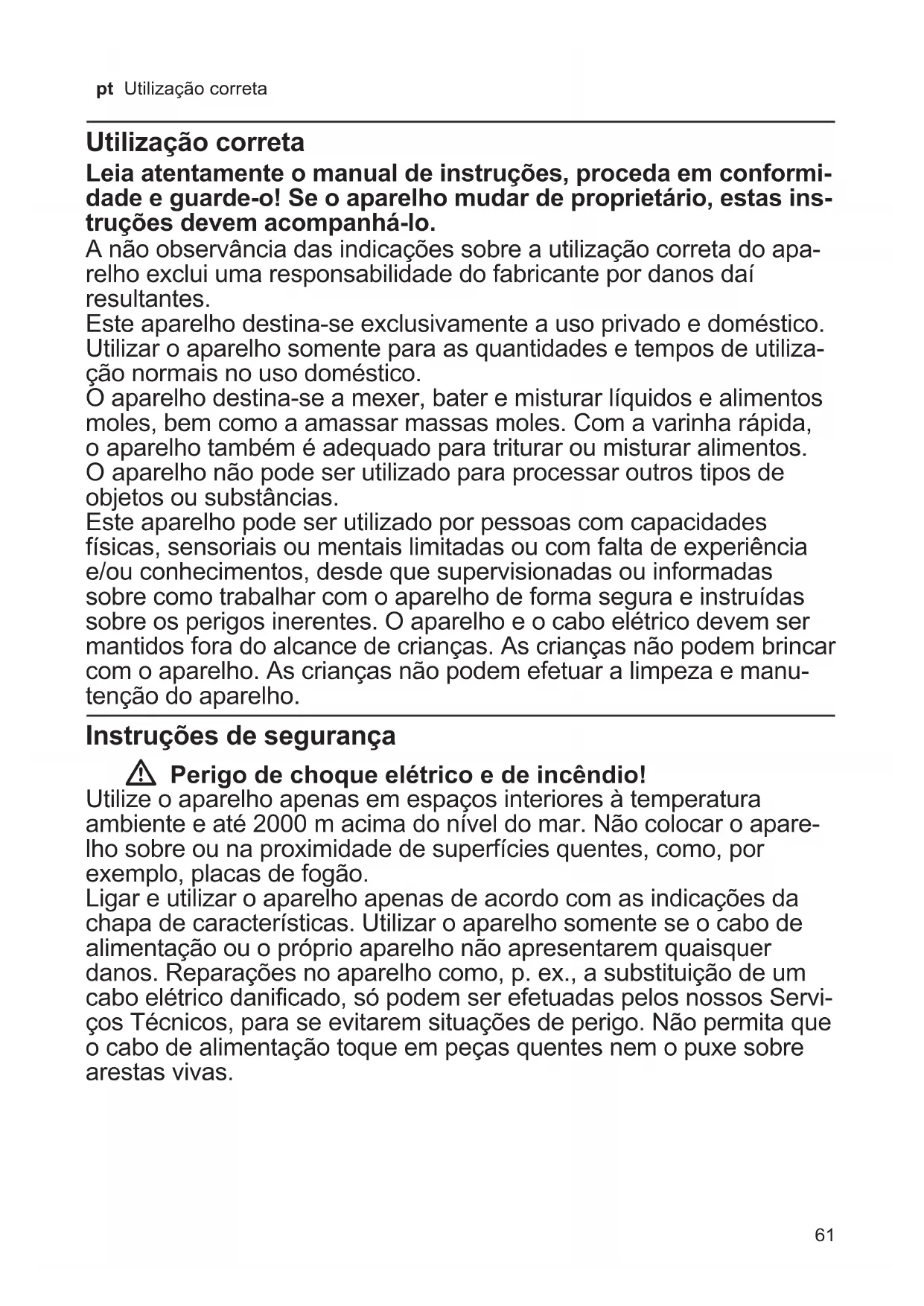 - Instruções de segurança p. 61