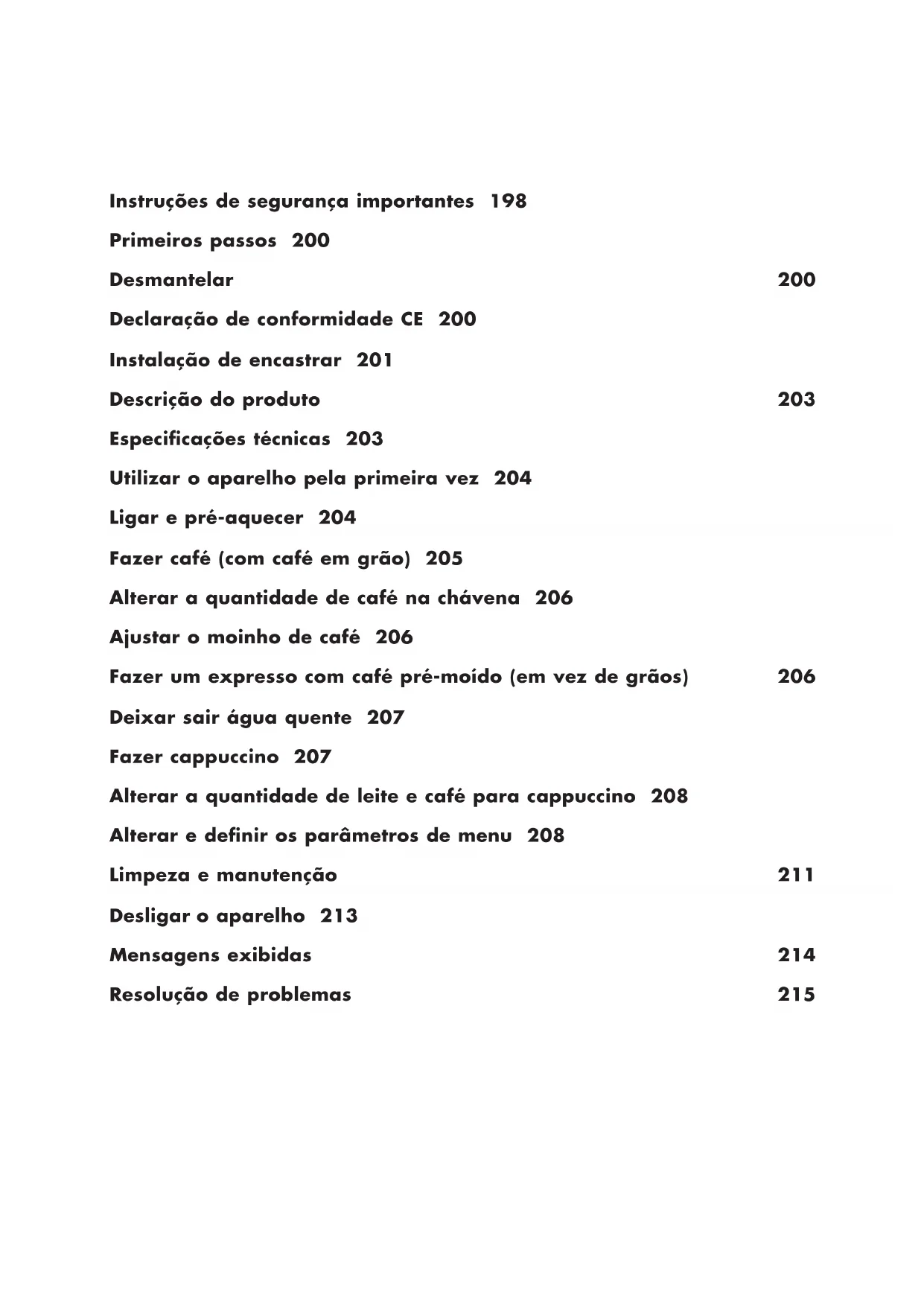 - Se a operação acima descrita não for realizada corretamente ou se a máquina for desligada, o visor pode mudar para as definições padrão programadas mesmo se o problema persistir. Fazer café (com café em grão)206 O aparelho está definido de fábrica para fornecer automaticamente as seguintes quantidades de café: