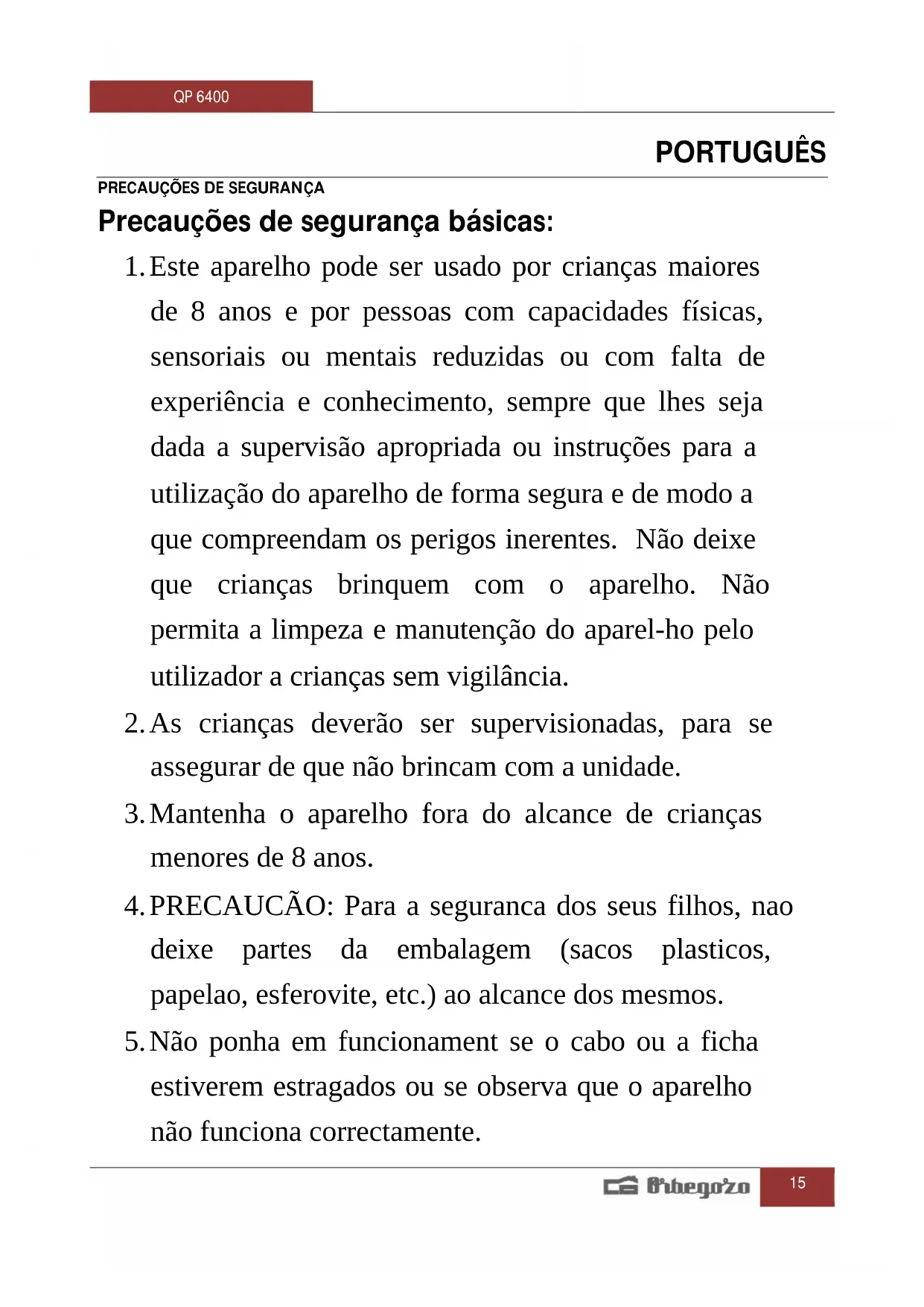MANUAL DE UTILIZADOR QP 6400 Orbegozo