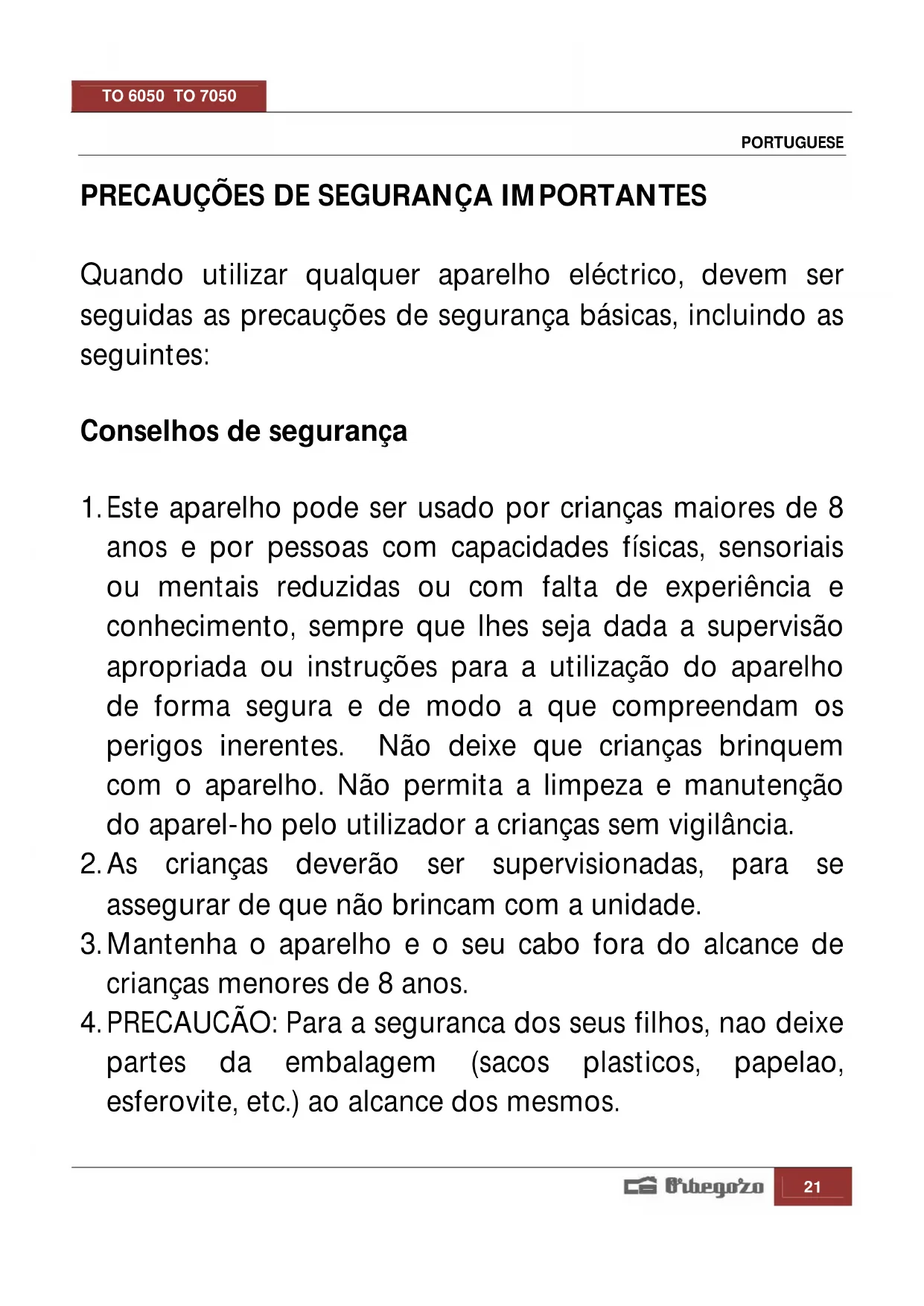 Encontre gratuitamente o manual do aparelho TO 7050 Orbegozo em formato PDF.