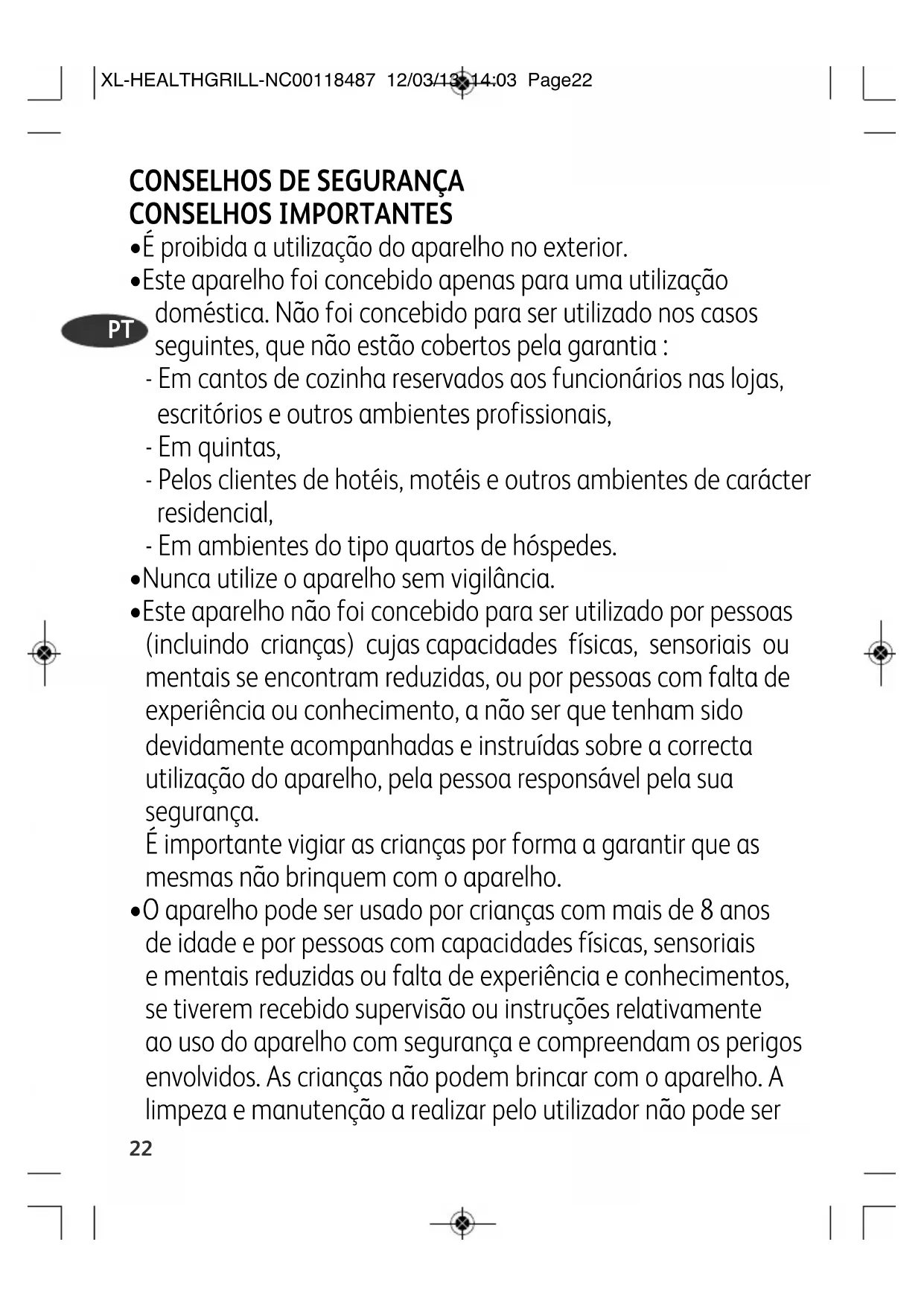 XL-HEALTHGRILL-NC00118487 12/03/13 14:03 Page22efectuada por crianças, a menos que estas tenham mais de 8 anos e sejam supervisionadas. Mantenha o aparelho e o respectivo cabo de alimentação fora do alcançe de crianças com menos de 8 anos de idade.