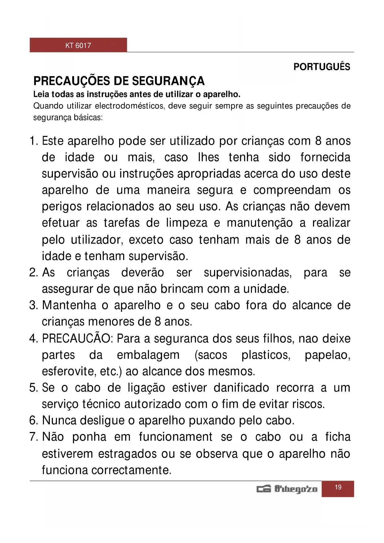 Encontre gratuitamente o manual do aparelho KT 6017 Orbegozo em formato PDF.