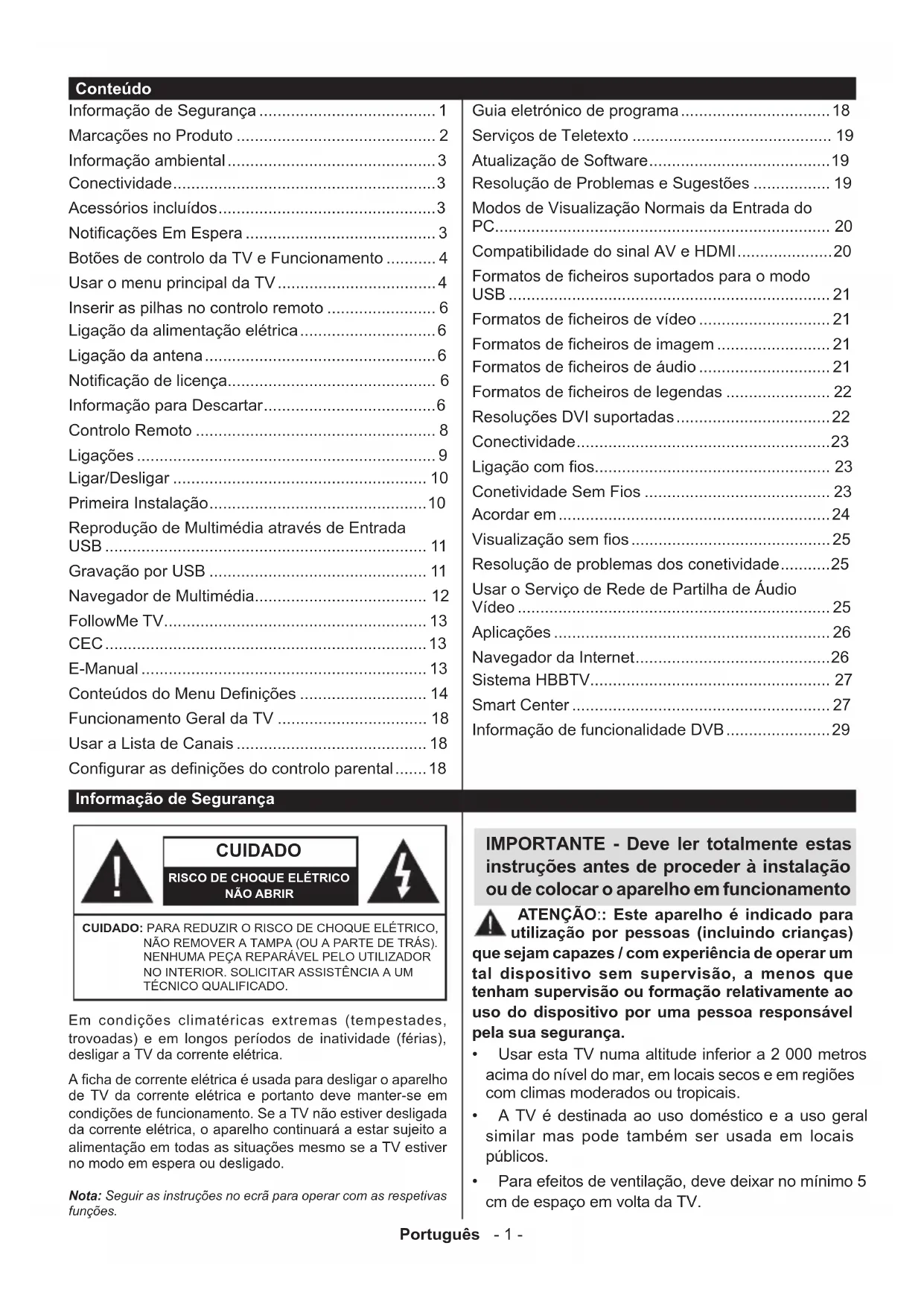 - Usar esta TV numa altitude inferior a 2000 metros acima do nível do mar, em locais secos e em regões com climas moderados ou tropicals.