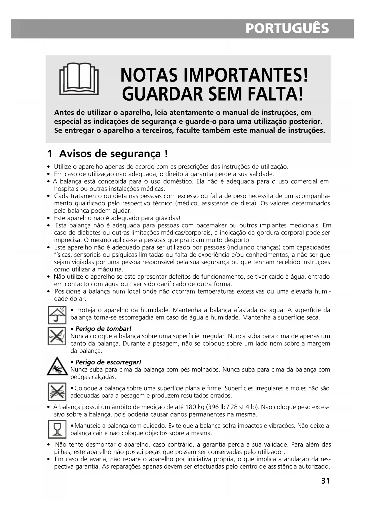 40432_BS475_Ko?rperfettwaage_08112013.qxd:Kompakt-GA 08.11.2013 12:29 Uhr Seite 3031 PORTUGUÊS 1 Avisos de segurança !