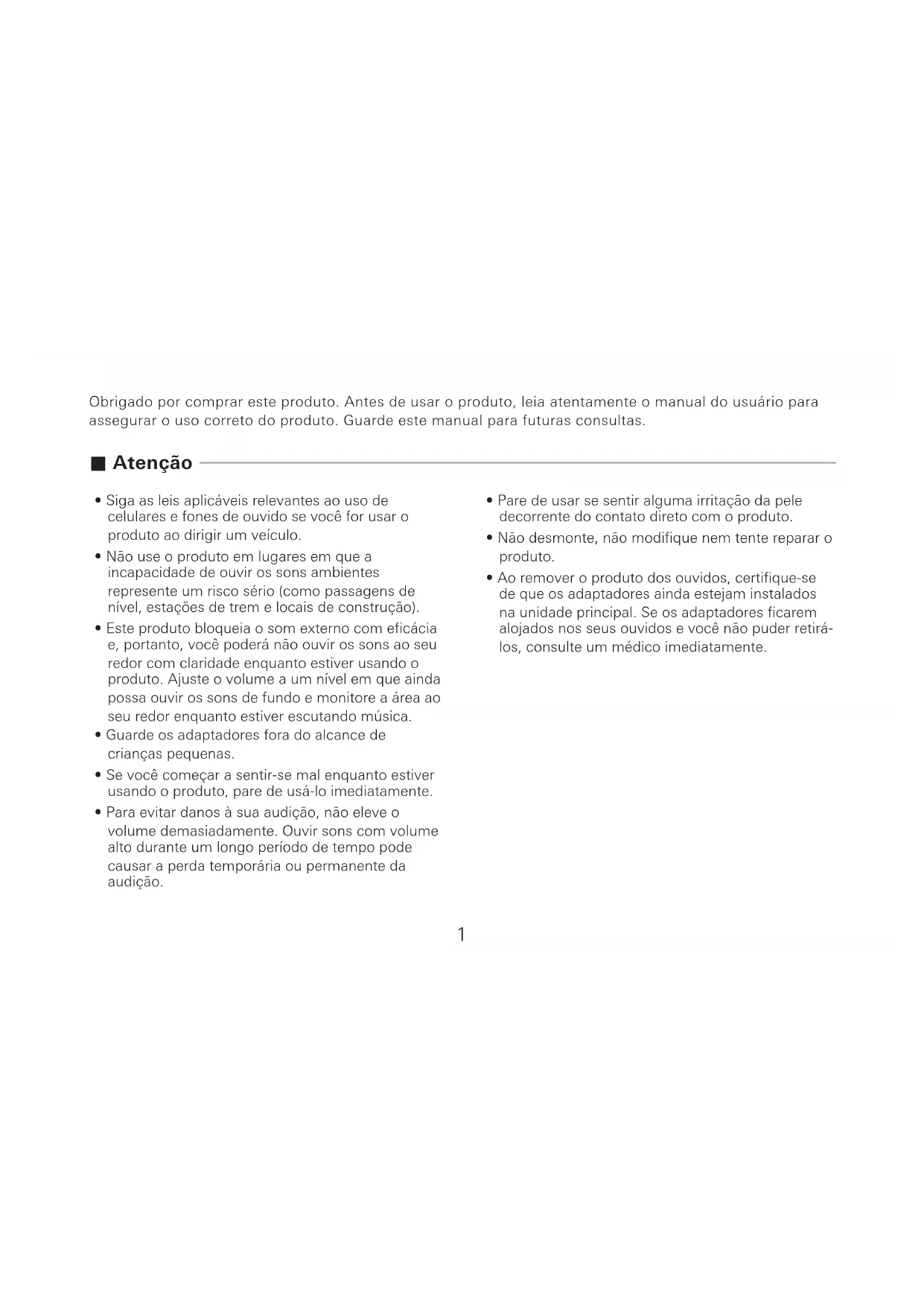 - Não use o produto em lugares em que a incapacidade de ouvir os sons ambientes represente um risco sério (como passagens de nível, estações de trem e locais de construção).