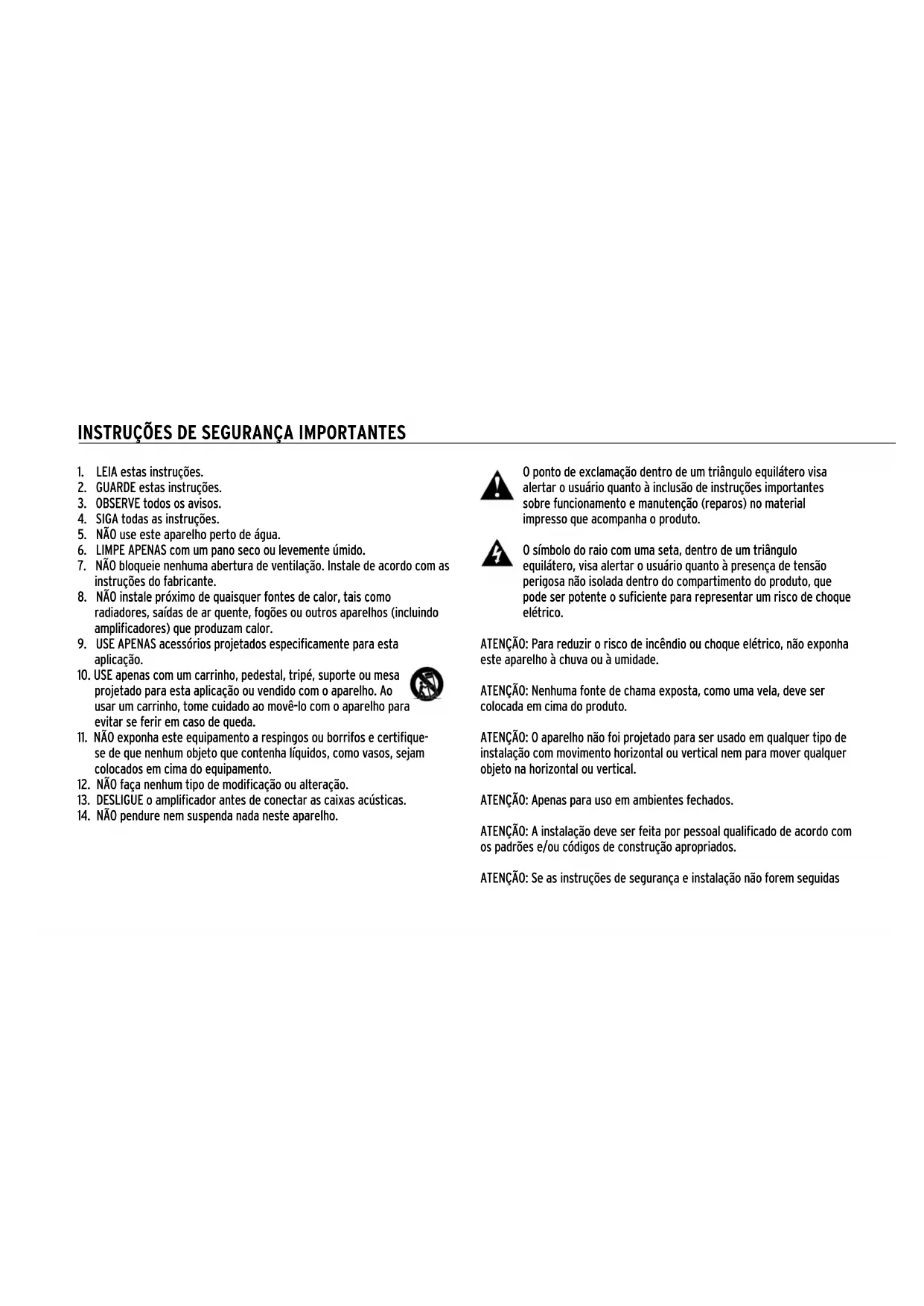 11. NÃO exponha este equipamento a respingos ou borrifos e certifique-
