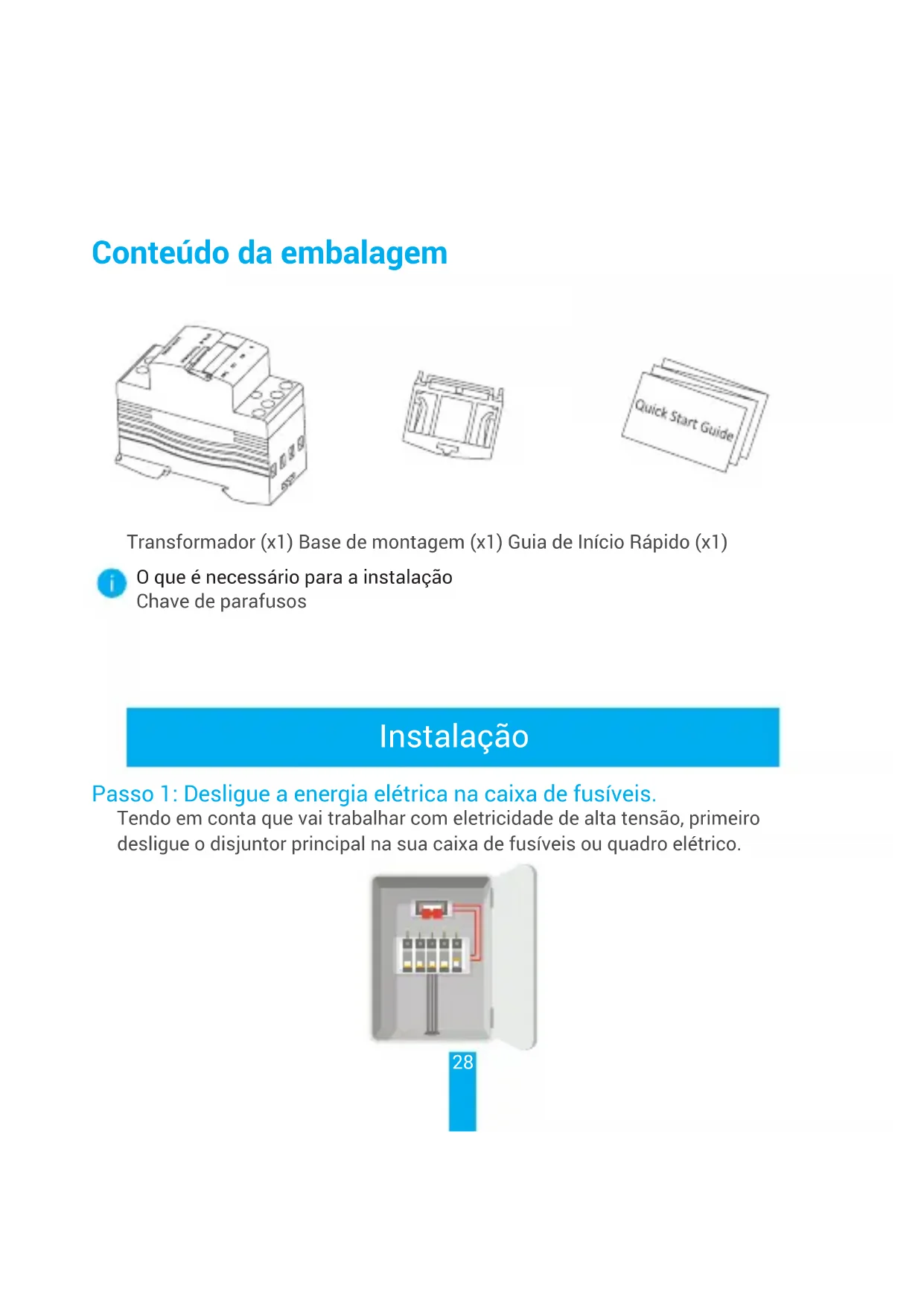12 volty. Výsledná montáž by se měla podobat následujícímu schématu. Vstup: 230 V stř. 12 V stř. do domovního zvonku Výstup: 12 V stř. Krok 4: obnovení napájení na jističi Podrobné informace naleznete na webových stránkách www.ezviz.eu.28 Conteúdo da embalagem Transformador (x1) Base de montagem (x1) Guia de Início Rápido (x1) O que é necessário para a instalação Chave de parafusos Instalação Passo 1: Desligue a energia elétrica na caixa de fusíveis. Tendo em conta que vai trabalhar com eletricidade de alta tensão, primeiro desligue o disjuntor principal na sua caixa de fusíveis ou quadro elétrico.29 Passo 2: Encontre o seu transformador de campainha existente. Para que a campainha EZVIZ funcione corretamente, é essencial dispor de uma alimentação de 12 V CA. Verique se o seu transformador de campainha existente cumpre esse requisito. Caso contrário, substitua-o pelo que vem na embalagem. Se necessitar de ajuda para este processo ou se morar numa área onde seja ilegal efetuar trabalhos no interior da caixa de fusíveis ou no quadro elétrico, contrate um eletricista certicado. O mais provável é o seu transformador estar no interior da sua caixa de fusíveis ou do quadro elétrico. Caso contrário, procure noutros locais onde estejam instalados componentes elétricos. Passo 3: Coloque os os no transformador.