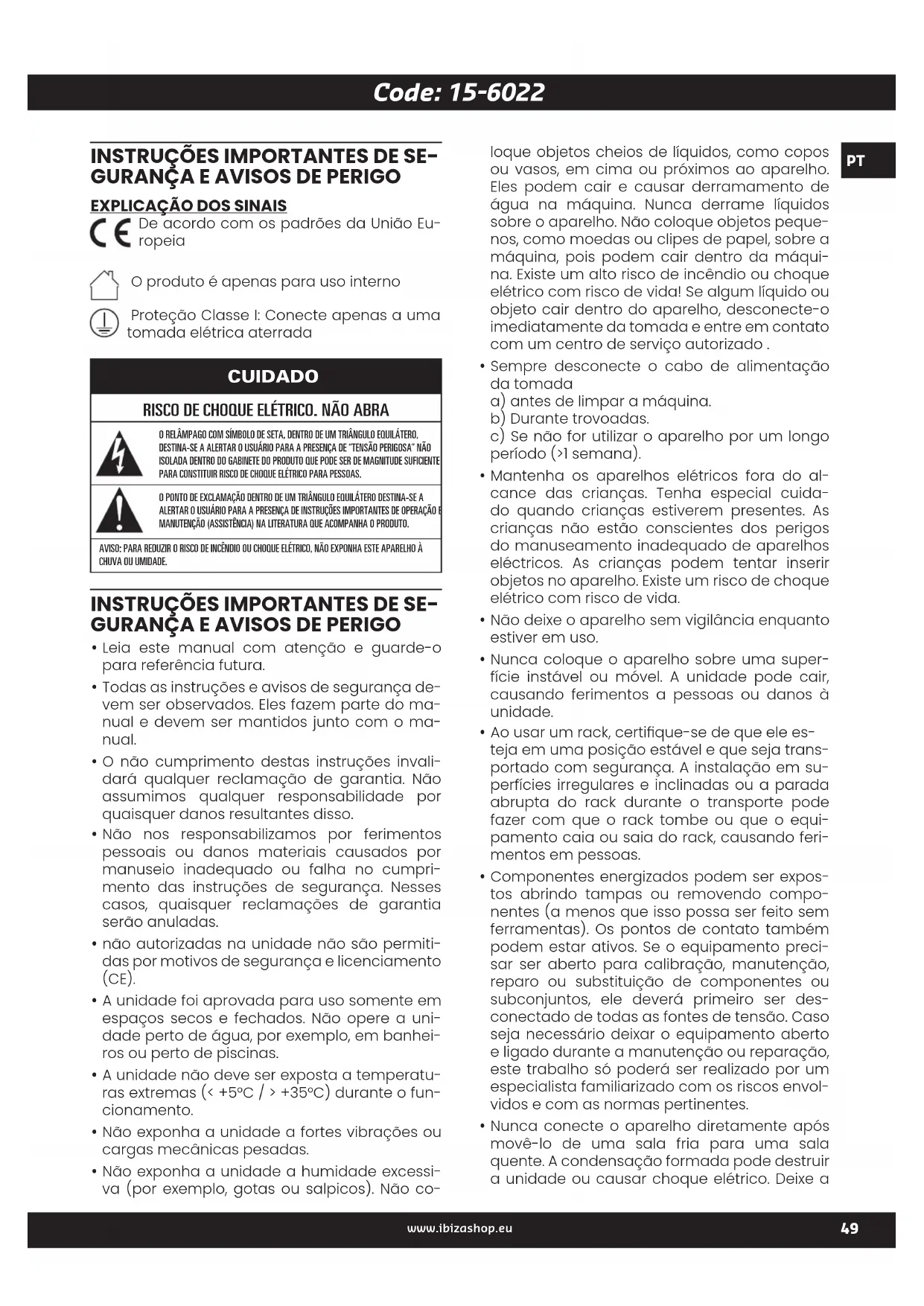Contém um fusível de 250V 6A. Se o fusível estiver queimado, substitua apenas por um fusível do mesmo tipo.Code: 15-6022